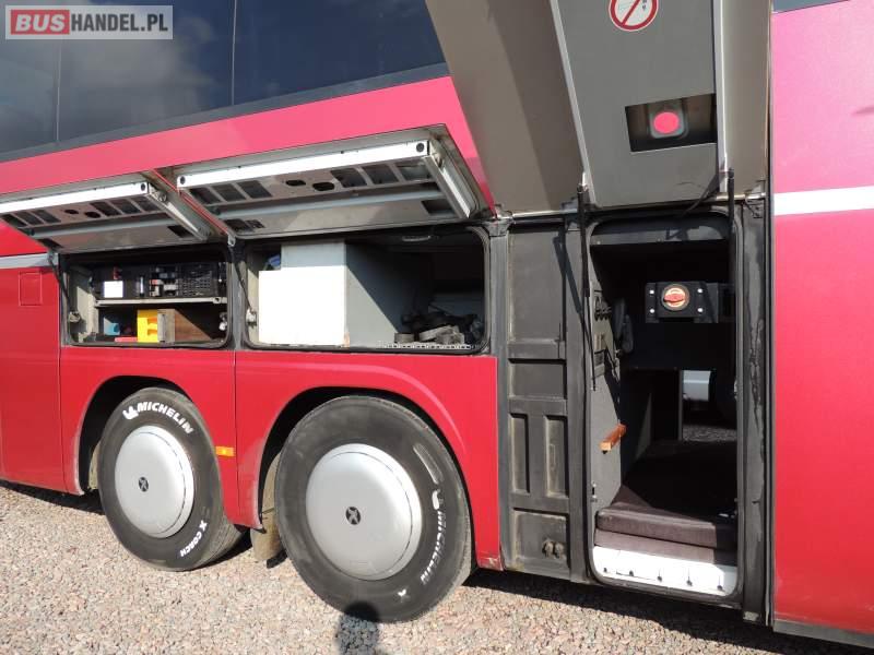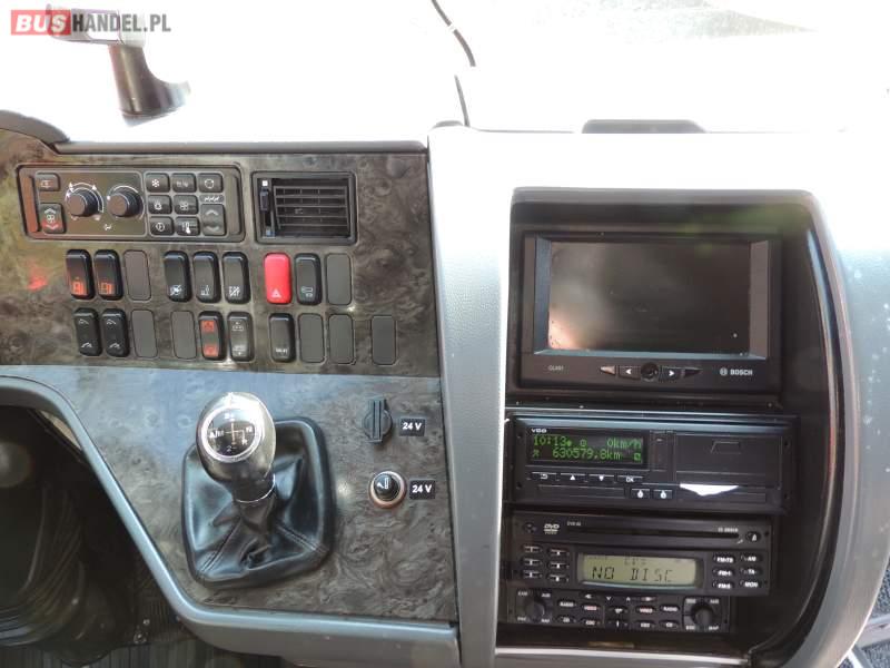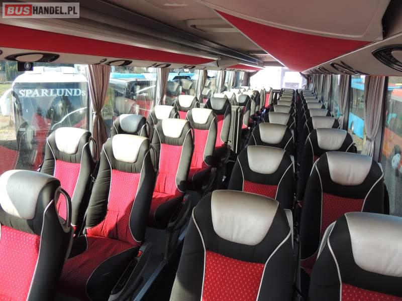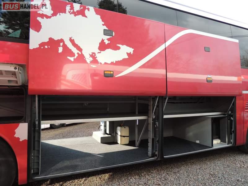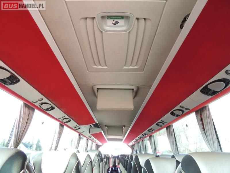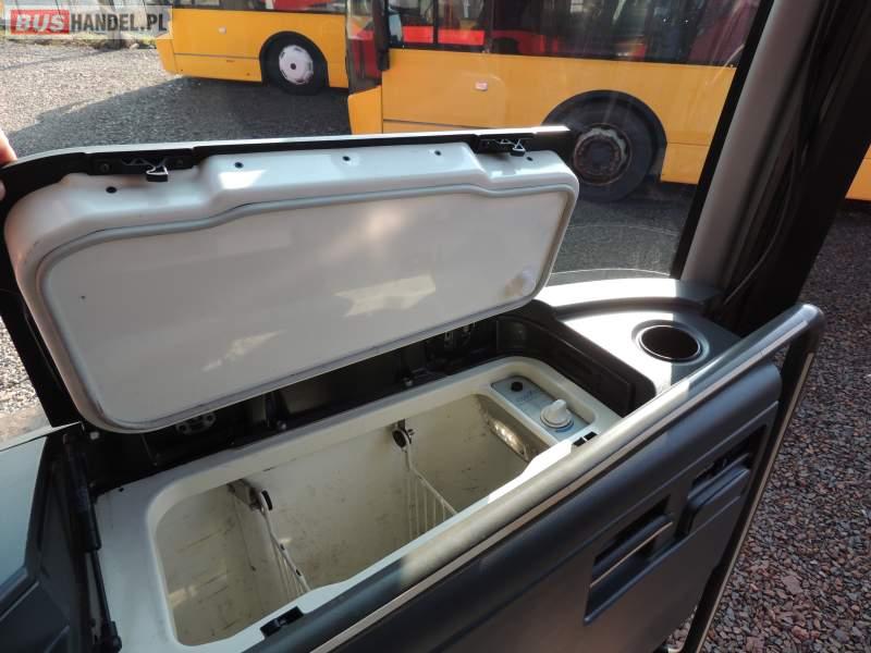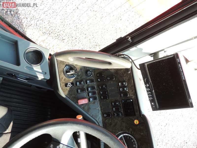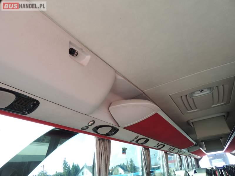 : video, WC, lodówka, caffebar, kabina sypialna, oświetlenie indywidualne, nawiewy dyszowe, siateczki, ABS, ASR, tempomat, retarder, CD, stoliczki, klimatyzacja, radio, regulacja wysokości nadwozia, centralny zamek, podwójne szyby boczne, wspomaganie kierownicy, elektryczne lusterka, fotele odchylane i rozsuwane, DVD, ogrzewanie stacjonarne, ESP