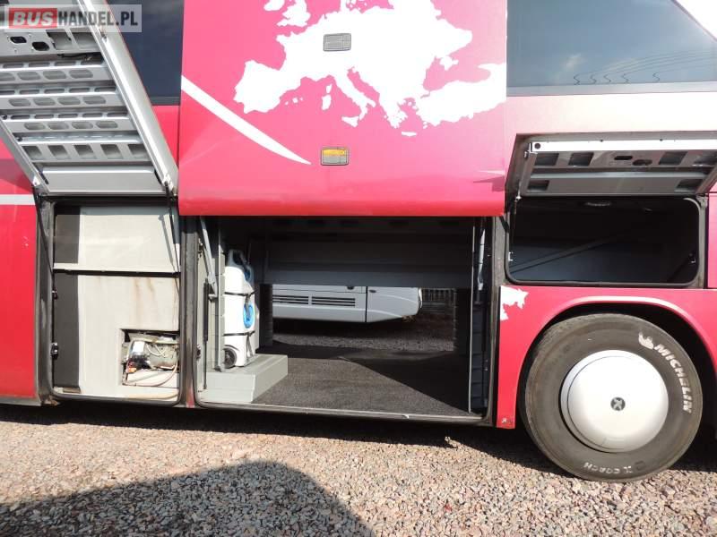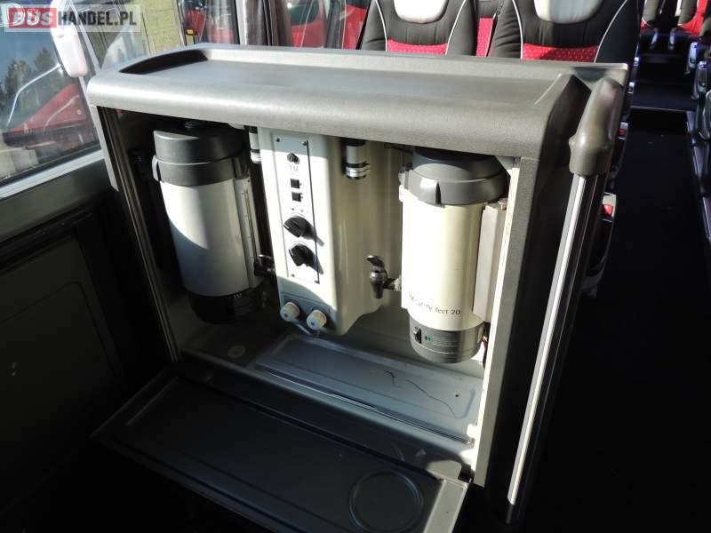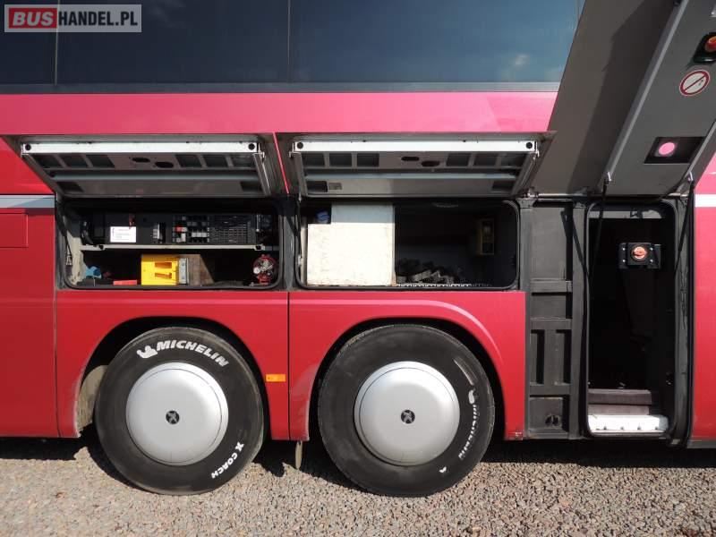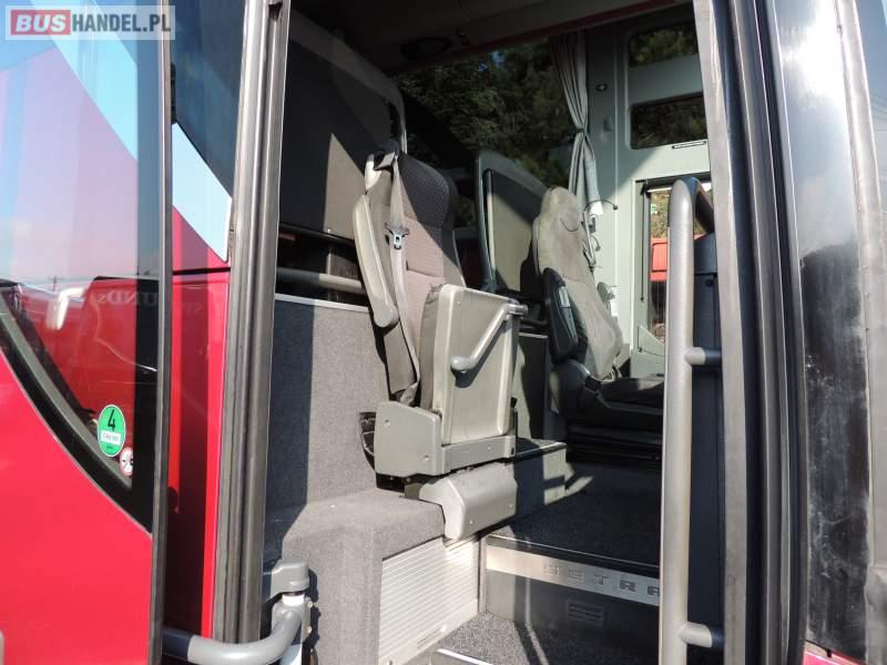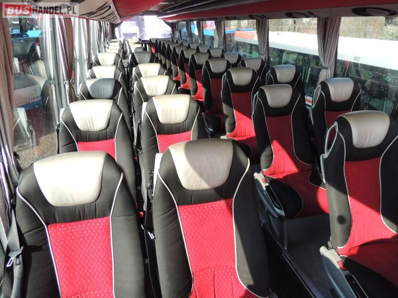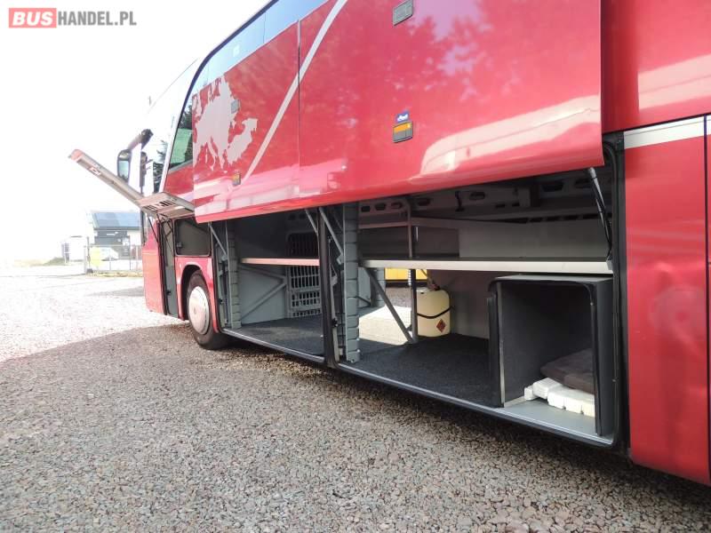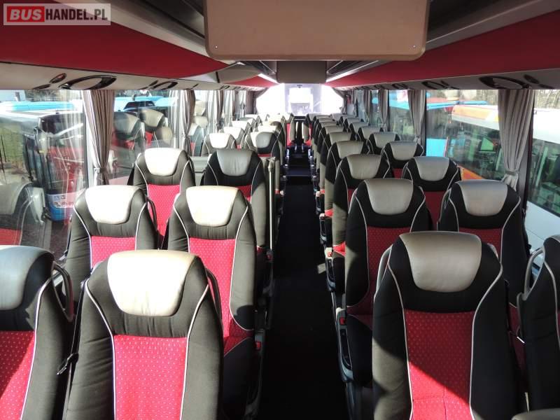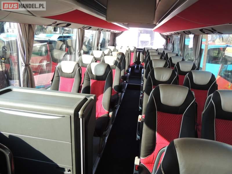 : video, WC, lodówka, caffebar, kabina sypialna, oświetlenie indywidualne, nawiewy dyszowe, siateczki, ABS, ASR, tempomat, retarder, CD, stoliczki, klimatyzacja, radio, regulacja wysokości nadwozia, centralny zamek, podwójne szyby boczne, wspomaganie kierownicy, elektryczne lusterka, fotele odchylane i rozsuwane, DVD, ogrzewanie stacjonarne, ESP