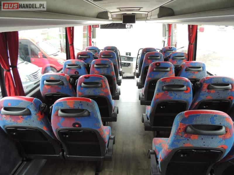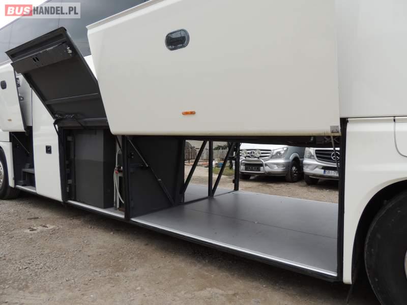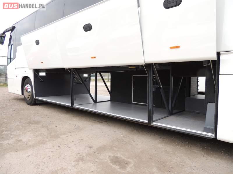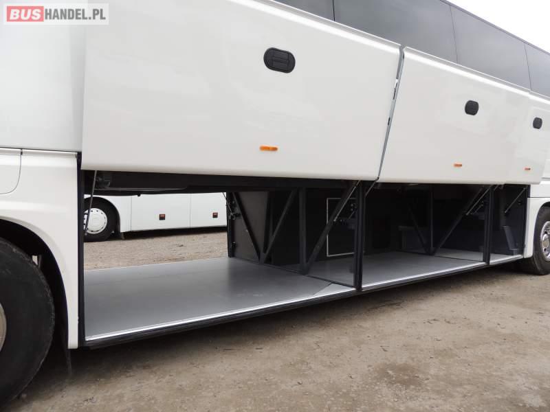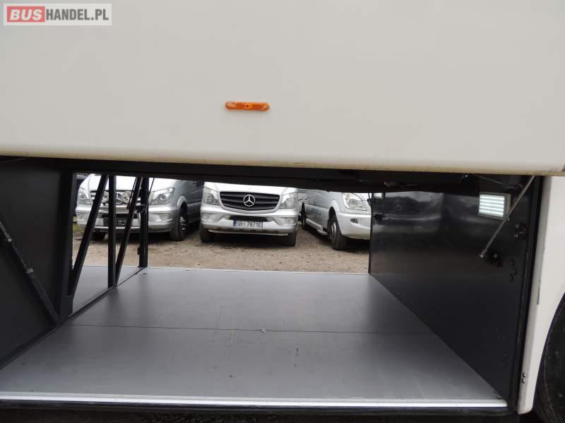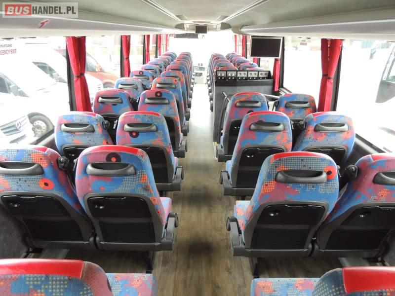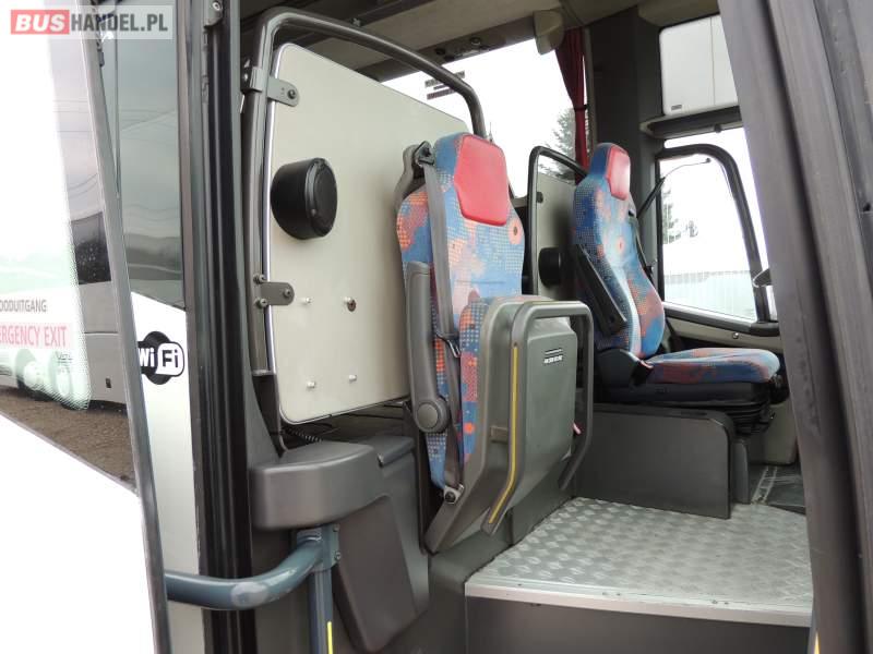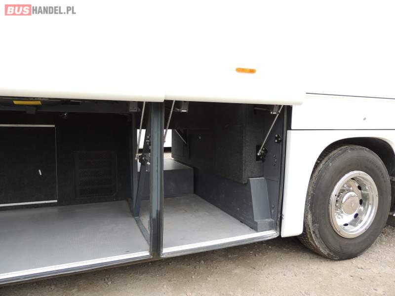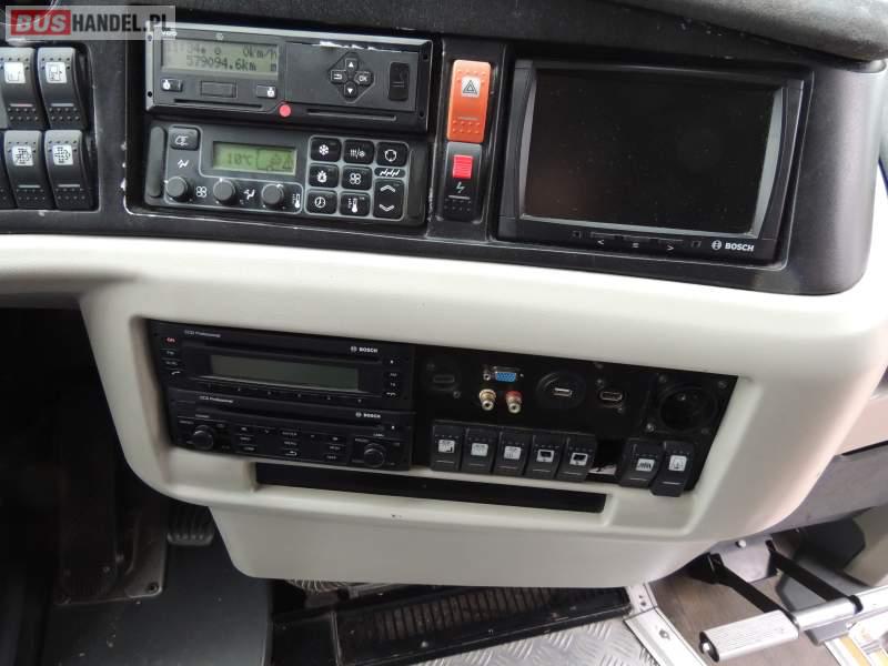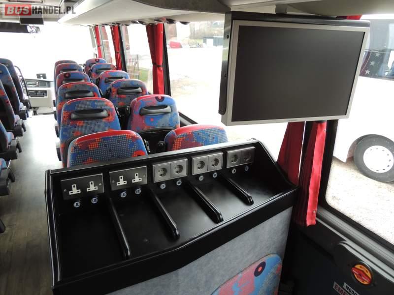 : video, WC, lodówka, oświetlenie indywidualne, nawiewy dyszowe, siateczki, ABS, ASR, tempomat, retarder, CD, podnóżki, stoliczki, mikrofon, klimatyzacja, radio, regulacja wysokości nadwozia, centralny zamek, podwójne szyby boczne, wspomaganie kierownicy, fotele odchylane i rozsuwane, DVD, ogrzewanie stacjonarne, ESP
