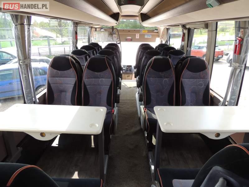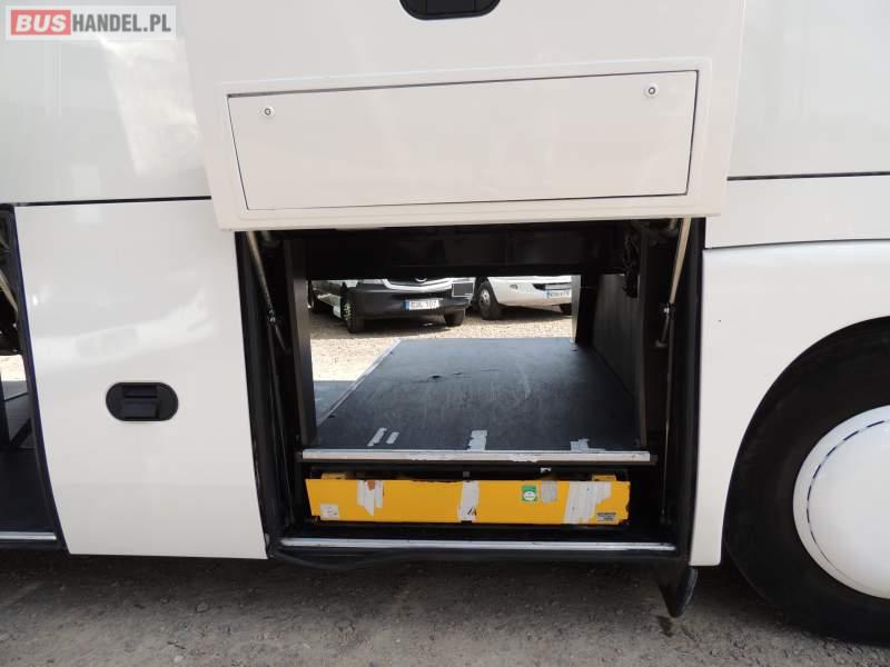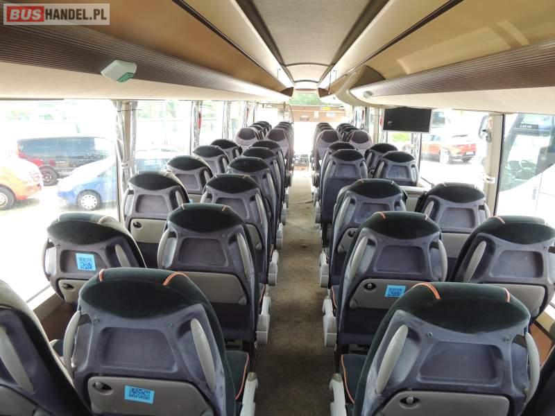 : video, lodówka, oświetlenie indywidualne, nawiewy dyszowe, ABS, ASR, retarder, CD, podnóżki, mikrofon, klimatyzacja, radio, rampa dla inwalidów, regulacja wysokości nadwozia, centralny zamek, wspomaganie kierownicy, elektryczne lusterka, fotele odchylane i rozsuwane, DVD, ogrzewanie stacjonarne, ESP