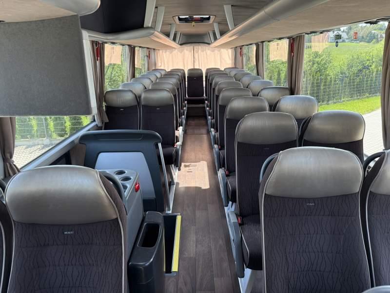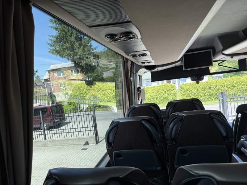 : video, WC, lodówka, kabina sypialna, fotele odchylane, oświetlenie indywidualne, nawiewy dyszowe, siateczki, ABS, ASR, tempomat, retarder, CD, podnóżki, stoliczki, mikrofon, klimatyzacja, radio, regulacja wysokości nadwozia, podwójne szyby boczne, wspomaganie kierownicy, elektryczne lusterka, aluminiowe felgi, fotele odchylane i rozsuwane, DVD, ogrzewanie stacjonarne