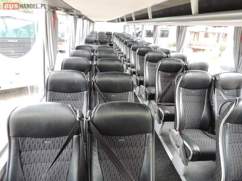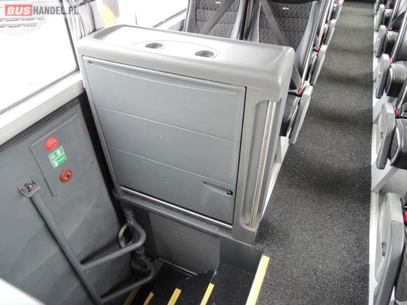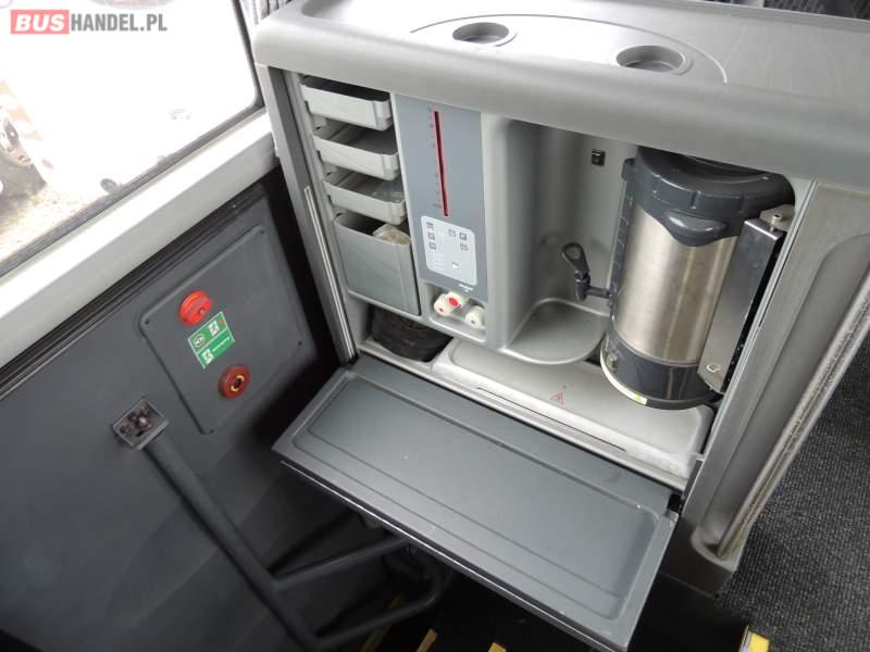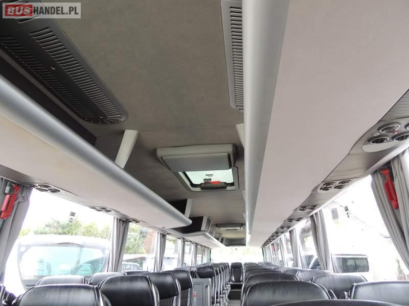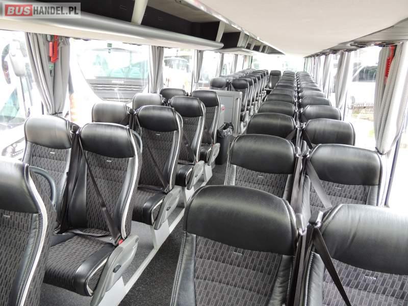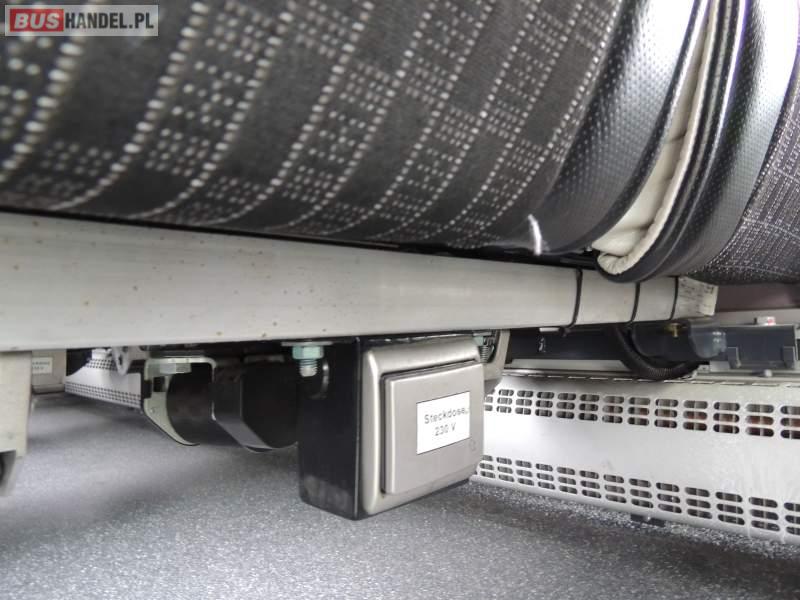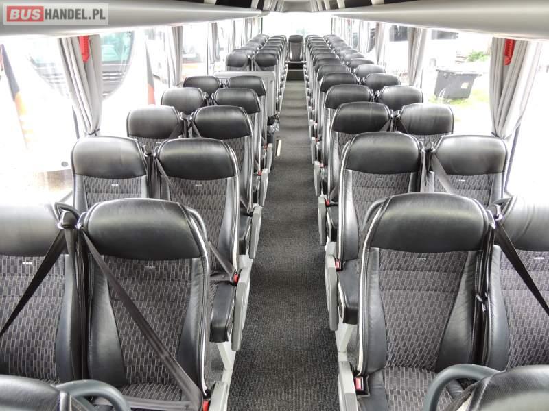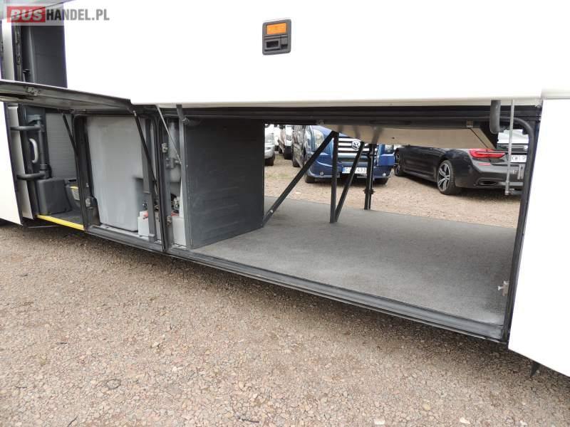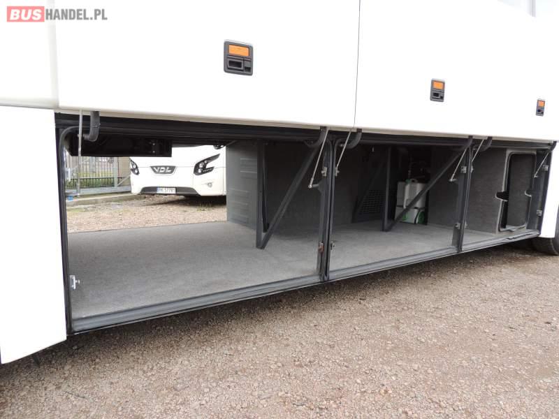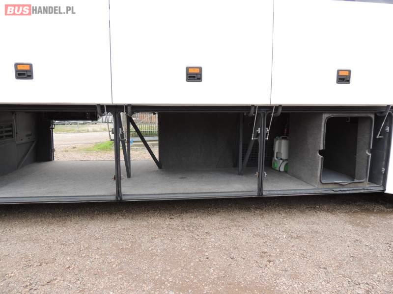 : video, WC, lodówka, caffebar, kabina sypialna, oświetlenie indywidualne, nawiewy dyszowe, siateczki, ABS, ASR, tempomat, retarder, telefon, nawigacja, CD, podnóżki, stoliczki, mikrofon, klimatyzacja, radio, sejf, regulacja wysokości nadwozia, centralny zamek, podwójne szyby boczne, wspomaganie kierownicy, elektryczne lusterka, fotele odchylane i rozsuwane, DVD, ogrzewanie stacjonarne, ESP