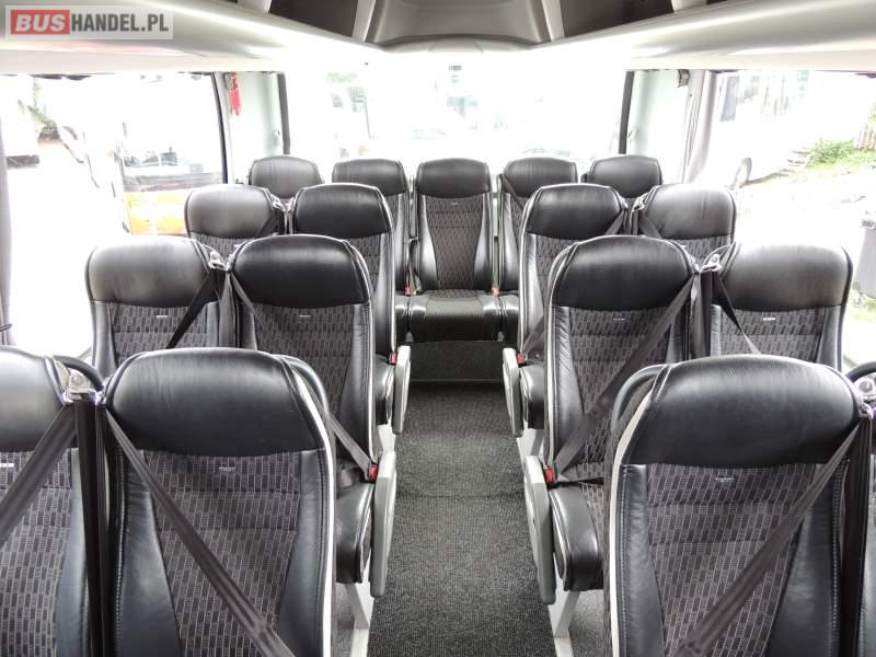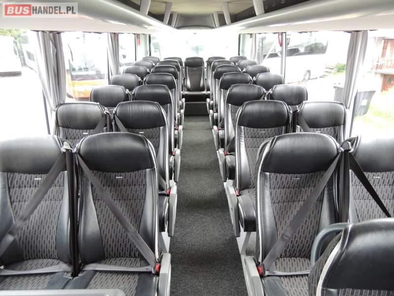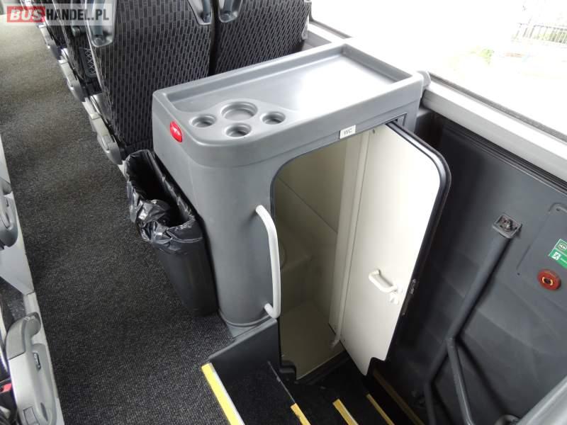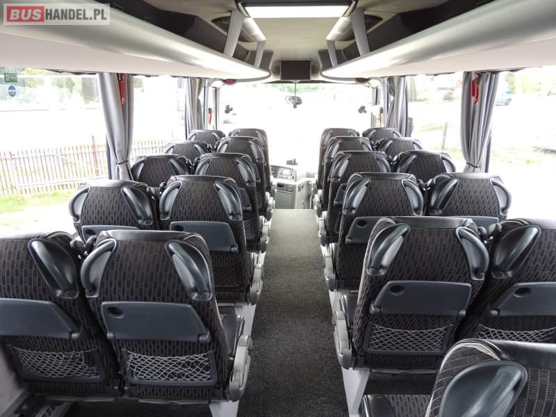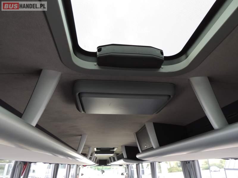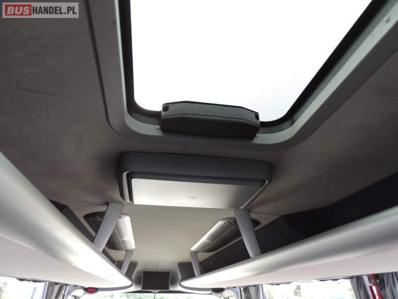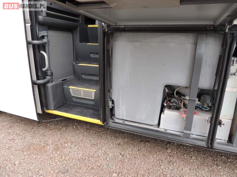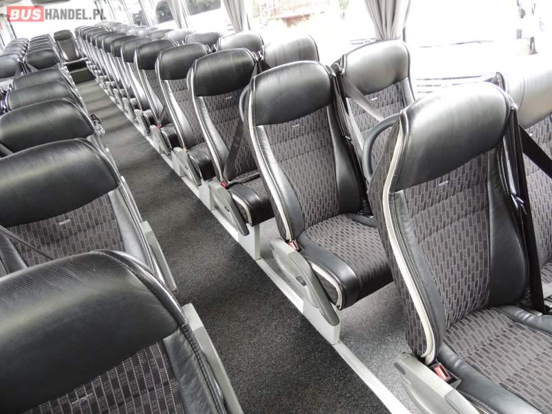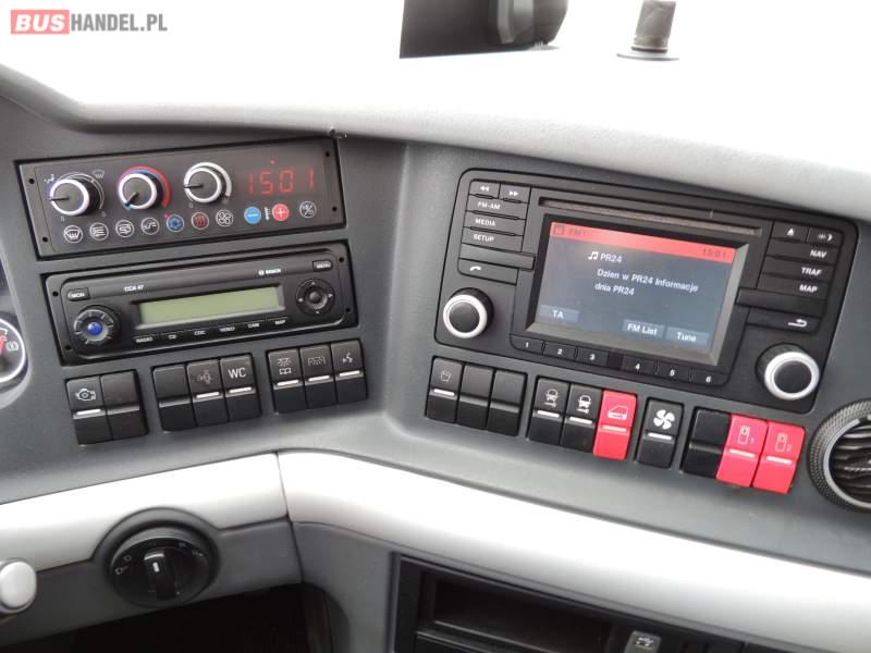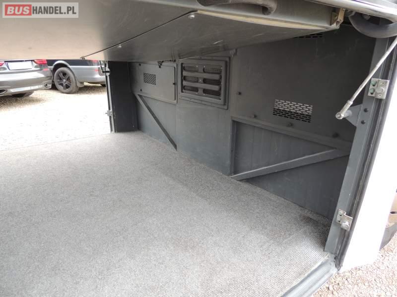 : video, WC, lodówka, caffebar, kabina sypialna, oświetlenie indywidualne, nawiewy dyszowe, siateczki, ABS, ASR, tempomat, retarder, telefon, nawigacja, CD, podnóżki, stoliczki, mikrofon, klimatyzacja, radio, sejf, regulacja wysokości nadwozia, centralny zamek, podwójne szyby boczne, wspomaganie kierownicy, elektryczne lusterka, fotele odchylane i rozsuwane, DVD, ogrzewanie stacjonarne, ESP