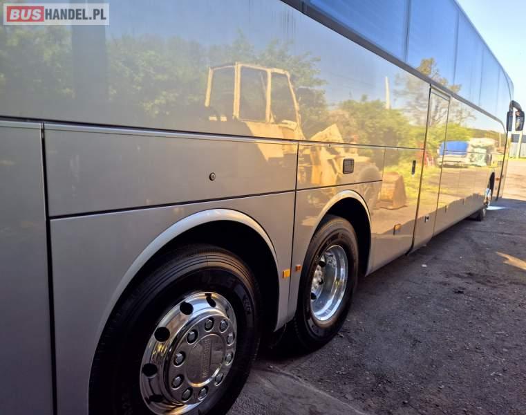 : video, WC, lodówka, caffebar, kabina sypialna, fotele odchylane, oświetlenie indywidualne, nawiewy dyszowe, siateczki, ABS, ASR, tempomat, retarder, CD, podnóżki, stoliczki, mikrofon, klimatyzacja, radio, wyświetlacz matrix, sejf, regulacja wysokości nadwozia, centralny zamek, podwójne szyby boczne, wspomaganie kierownicy, elektryczne lusterka, aluminiowe felgi, fotele odchylane i rozsuwane, DVD, ogrzewanie stacjonarne, hak holowniczy, ESP