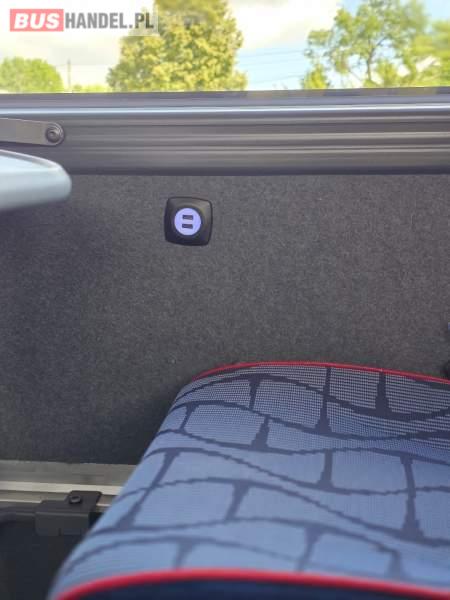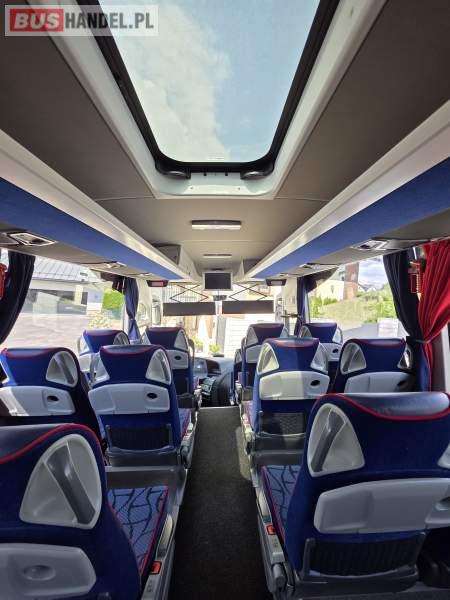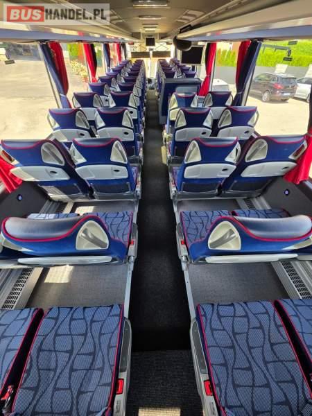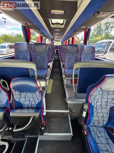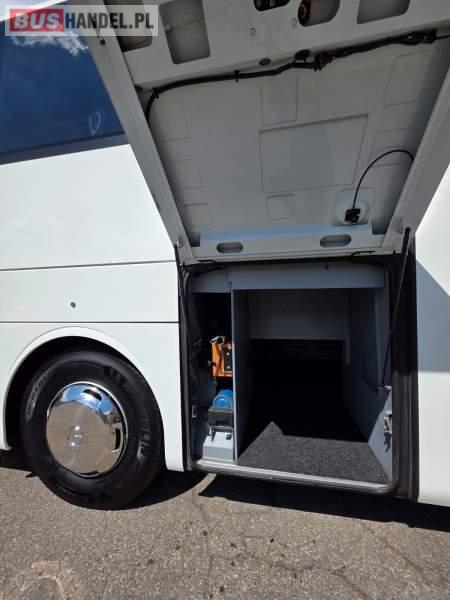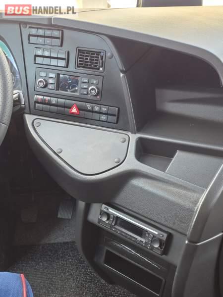 : WC, lodówka, kabina sypialna, oświetlenie indywidualne, nawiewy dyszowe, siateczki, ABS, ASR, tempomat, retarder, stoliczki, mikrofon, klimatyzacja, radio, sejf, regulacja wysokości nadwozia, centralny zamek, podwójne szyby boczne, wspomaganie kierownicy, elektryczne lusterka, fotele odchylane i rozsuwane, DVD, ogrzewanie stacjonarne, ESP