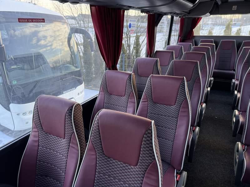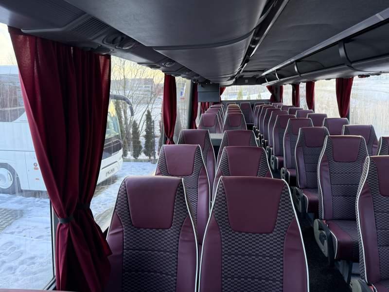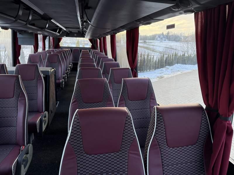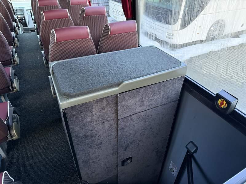 : WC, lodówka, fotele odchylane, nawiewy dyszowe, mikrofon, klimatyzacja, regulacja wysokości nadwozia, podwójne szyby boczne, wspomaganie kierownicy