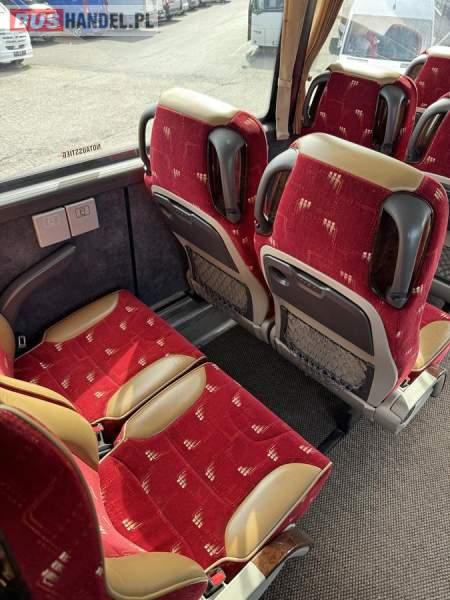 : WC, lodówka, caffebar, kabina sypialna, fotele odchylane, oświetlenie indywidualne, nawiewy dyszowe, siateczki, ABS, ASR, tempomat, retarder, CD, podnóżki, stoliczki, mikrofon, klimatyzacja, radio, wyświetlacz matrix, regulacja wysokości nadwozia, centralny zamek, podwójne szyby boczne, wspomaganie kierownicy, elektryczne lusterka, DVD, ogrzewanie stacjonarne, ESP