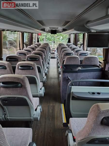 : video, WC, lodówka, caffebar, kabina sypialna, fotele odchylane, oświetlenie indywidualne, nawiewy dyszowe, ABS, ASR, tempomat, retarder, CD, stoliczki, mikrofon, klimatyzacja, radio, sejf, regulacja wysokości nadwozia, centralny zamek, podwójne szyby boczne, wspomaganie kierownicy, elektryczne lusterka, fotele odchylane i rozsuwane, DVD, ogrzewanie stacjonarne, hak holowniczy, ESP