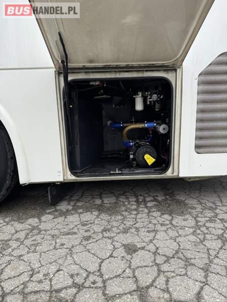 : lodówka, oświetlenie indywidualne, nawiewy dyszowe, siateczki, ABS, ASR, tempomat, retarder, podnóżki, stoliczki, mikrofon, klimatyzacja, radio, sejf, regulacja wysokości nadwozia, centralny zamek, podwójne szyby boczne, wspomaganie kierownicy, elektryczne lusterka, ogrzewanie stacjonarne