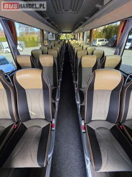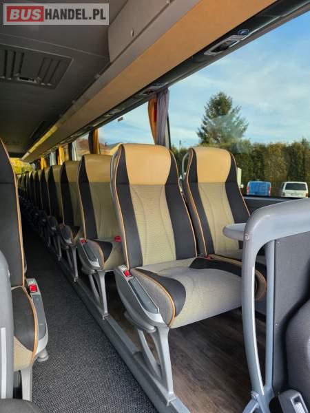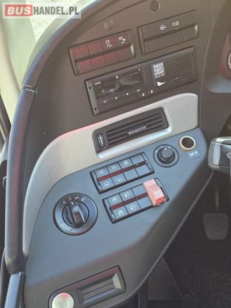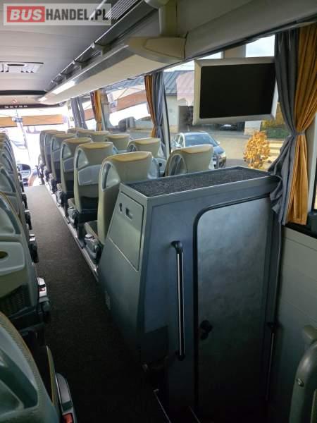 : WC, lodówka, caffebar, kabina sypialna, oświetlenie indywidualne, nawiewy dyszowe, siateczki, ABS, ASR, tempomat, retarder, stoliczki, mikrofon, klimatyzacja, radio, sejf, regulacja wysokości nadwozia, centralny zamek, podwójne szyby boczne, wspomaganie kierownicy, elektryczne lusterka, fotele odchylane i rozsuwane, DVD, ogrzewanie stacjonarne, ESP
