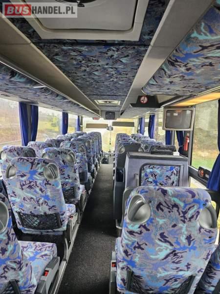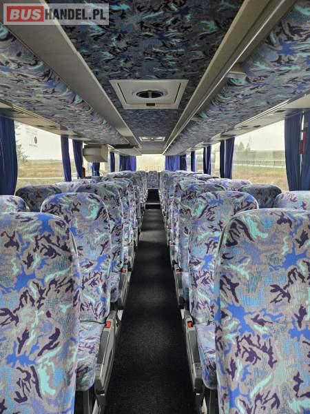 : video, WC, lodówka, caffebar, fotele odchylane, oświetlenie indywidualne, nawiewy dyszowe, siateczki, ABS, ASR, tempomat, retarder, CD, mikrofon, klimatyzacja, radio, regulacja wysokości nadwozia, podwójne szyby boczne, wspomaganie kierownicy, elektryczne lusterka, DVD, ogrzewanie stacjonarne