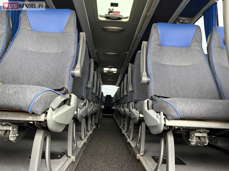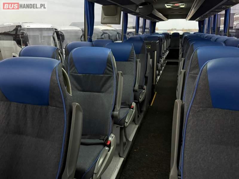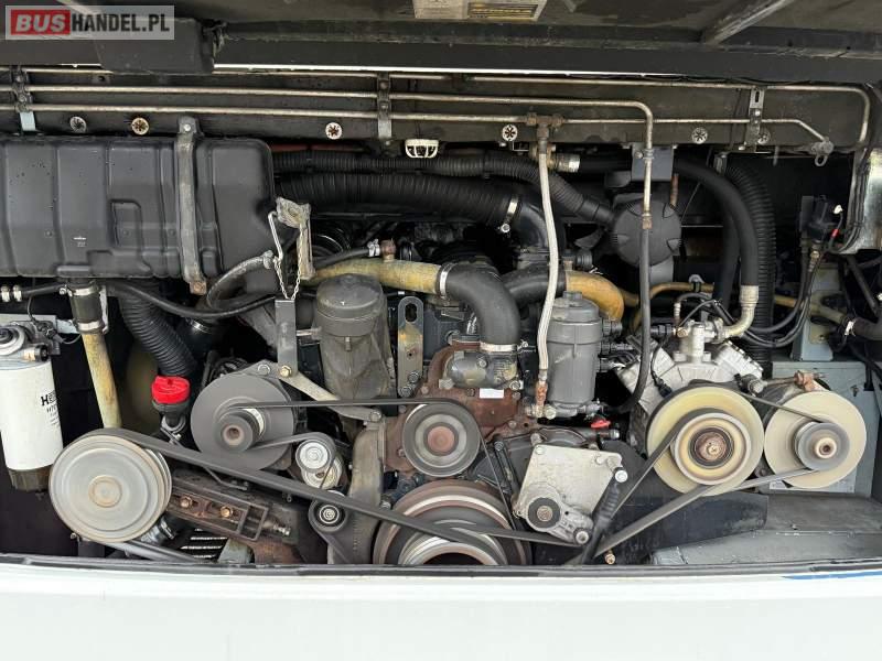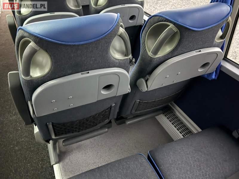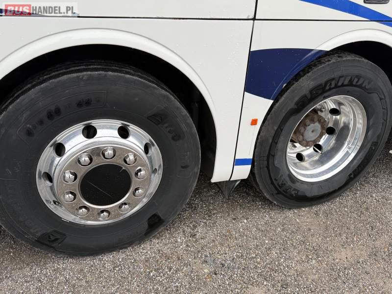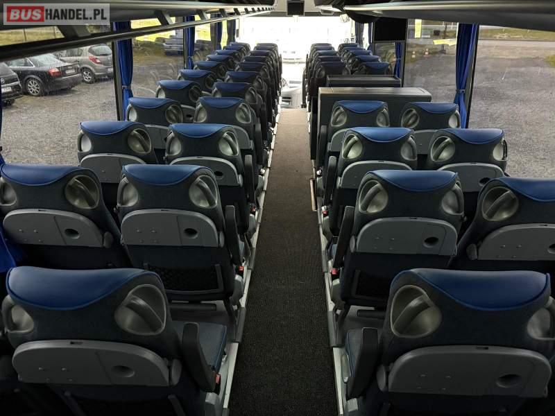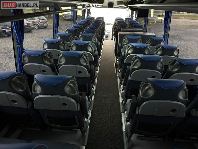 : video, WC, lodówka, caffebar, kabina sypialna, oświetlenie indywidualne, nawiewy dyszowe, siateczki, ABS, ASR, tempomat, retarder, CD, podnóżki, stoliczki, mikrofon, klimatyzacja, radio, regulacja wysokości nadwozia, centralny zamek, podwójne szyby boczne, wspomaganie kierownicy, elektryczne lusterka, aluminiowe felgi, fotele odchylane i rozsuwane, DVD, ogrzewanie stacjonarne, ESP