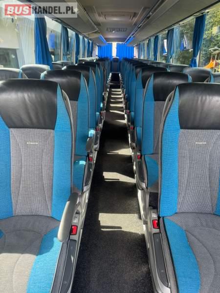 : klimatyzacja, WC, lodówka, caffebar, kabina sypialna, oświetlenie indywidualne, nawiewy dyszowe, fotele odchylane, podnóżki, stoliczki, siateczki, ABS, ASR, tempomat, retarder, nawigacja, CD, mikrofon, radio, fotele odchylane i rozsuwane, kuchenka mikrofalowa, wyświetlacz matrix, sejf, regulacja wysokości nadwozia, centralny zamek, podwójne szyby boczne, wspomaganie kierownicy, elektryczne lusterka, ogrzewanie stacjonarne, DVD, hak holowniczy, ESP