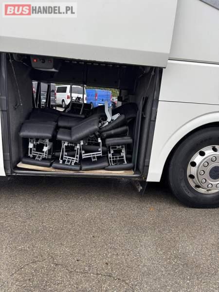 : WC, lodówka, fotele odchylane, oświetlenie indywidualne, nawiewy dyszowe, siateczki, ABS, ASR, tempomat, retarder, CD, podnóżki, stoliczki, mikrofon, klimatyzacja, radio, regulacja wysokości nadwozia, centralny zamek, podwójne szyby boczne, wspomaganie kierownicy, elektryczne lusterka, DVD, ogrzewanie stacjonarne, ESP
