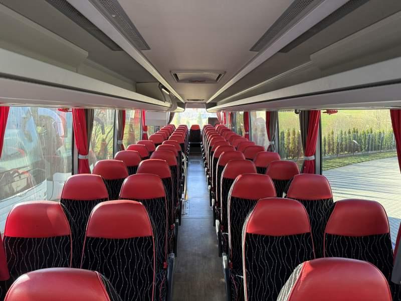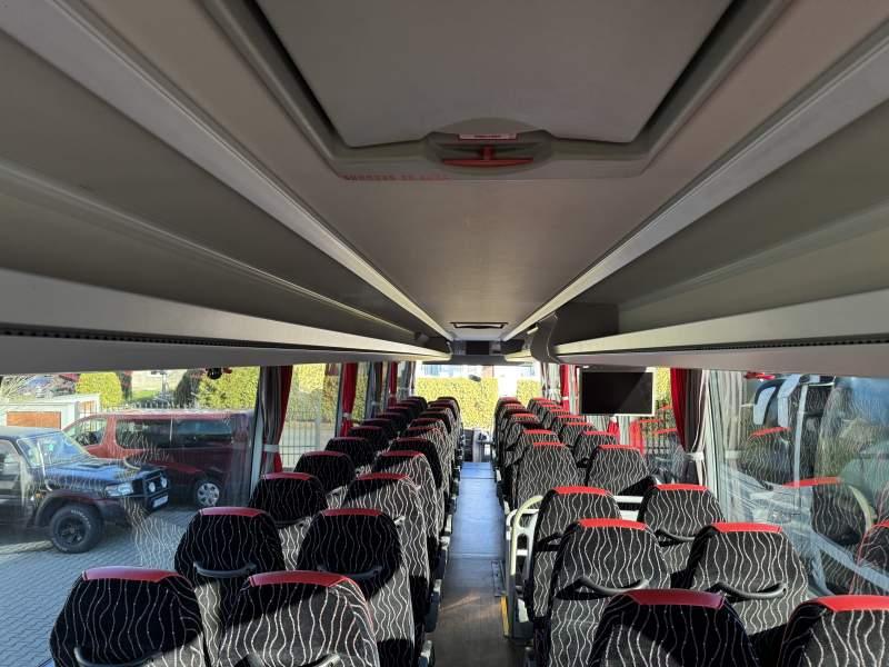 : klimatyzacja, WC, kabina sypialna, oświetlenie indywidualne, nawiewy dyszowe, siateczki, tempomat, retarder, CD, radio, fotele odchylane i rozsuwane, regulacja wysokości nadwozia, centralny zamek, podwójne szyby boczne, wspomaganie kierownicy, aluminiowe felgi, elektryczne lusterka, ogrzewanie stacjonarne, DVD