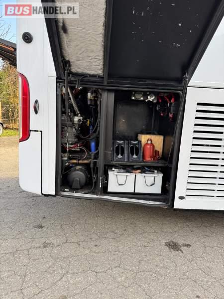 : WC, lodówka, caffebar, kabina sypialna, oświetlenie indywidualne, nawiewy dyszowe, siateczki, ABS, ASR, tempomat, retarder, podnóżki, stoliczki, mikrofon, klimatyzacja, radio, sejf, regulacja wysokości nadwozia, centralny zamek, podwójne szyby boczne, wspomaganie kierownicy, elektryczne lusterka, fotele odchylane i rozsuwane, DVD, ogrzewanie stacjonarne, ESP