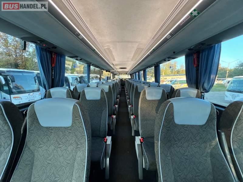 : klimatyzacja, video, WC, lodówka, kabina sypialna, oświetlenie indywidualne, nawiewy dyszowe, fotele odchylane, podnóżki, stoliczki, siateczki, ABS, ASR, tempomat, retarder, mikrofon, radio, rampa dla inwalidów, regulacja wysokości nadwozia, centralny zamek, podwójne szyby boczne, wspomaganie kierownicy, elektryczne lusterka, ogrzewanie stacjonarne, DVD