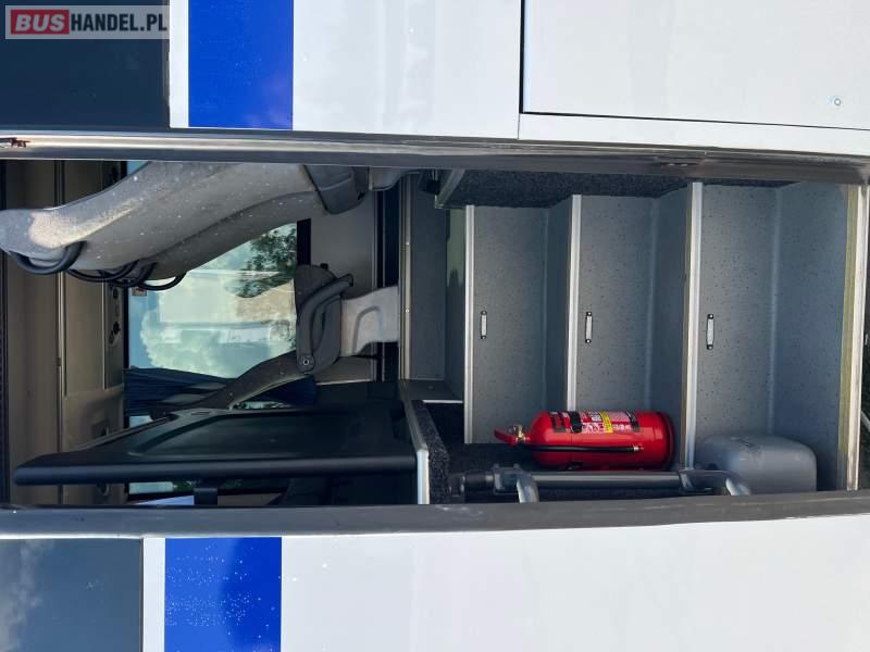 : oświetlenie indywidualne, ABS, ASR, retarder, podnóżki, mikrofon, klimatyzacja, wspomaganie kierownicy, elektryczne lusterka