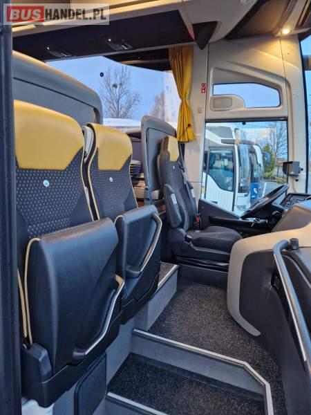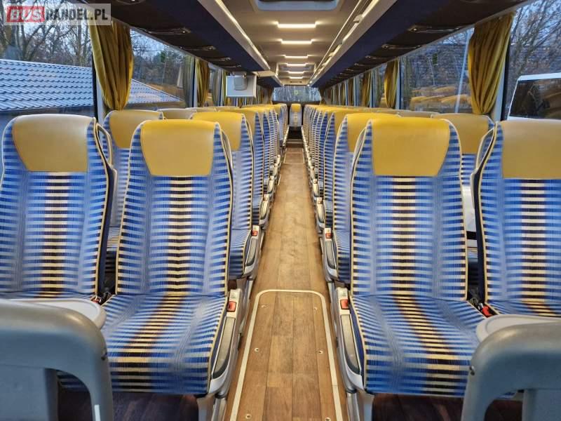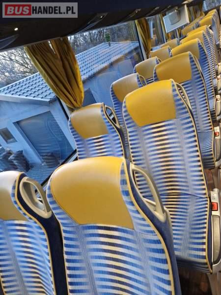 : klimatyzacja, video, WC, lodówka, caffebar, oświetlenie indywidualne, nawiewy dyszowe, podnóżki, stoliczki, siateczki, ABS, ASR, tempomat, retarder, telefon, nawigacja, CD, mikrofon, radio, fotele odchylane i rozsuwane, sejf, regulacja wysokości nadwozia, centralny zamek, podwójne szyby boczne, wspomaganie kierownicy, elektryczne lusterka, ogrzewanie stacjonarne, DVD, hak holowniczy, ESP