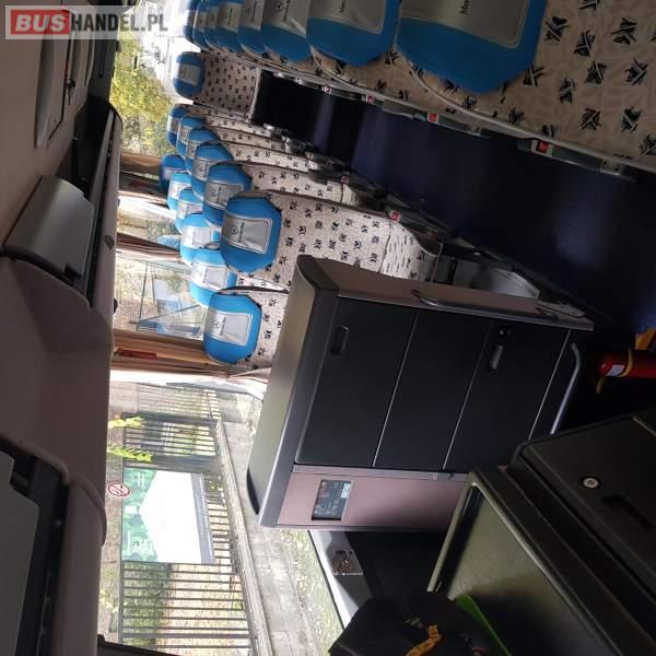 : video, WC, lodówka, caffebar, kabina sypialna, fotele odchylane, oświetlenie indywidualne, nawiewy dyszowe, siateczki, ABS, ASR, tempomat, retarder, CD, podnóżki, stoliczki, mikrofon, klimatyzacja, radio, sejf, regulacja wysokości nadwozia, centralny zamek, podwójne szyby boczne, wspomaganie kierownicy, elektryczne lusterka, aluminiowe felgi, DVD, ogrzewanie stacjonarne, hak holowniczy, ESP