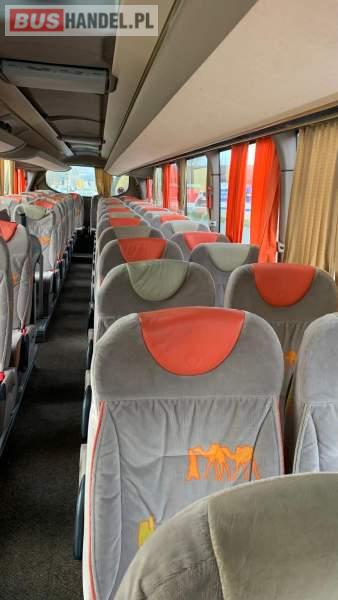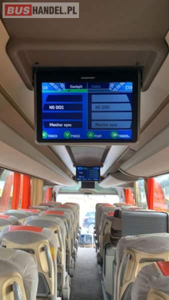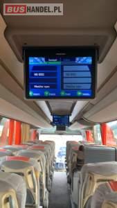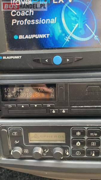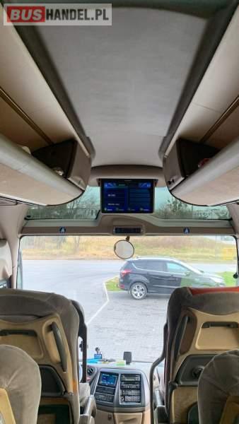: klimatyzacja, video, WC, lodówka, oświetlenie indywidualne, nawiewy dyszowe, fotele odchylane, podnóżki, stoliczki, ABS, ASR, tempomat, retarder, nawigacja, CD, mikrofon, radio, wyświetlacz matrix, regulacja wysokości nadwozia, centralny zamek, podwójne szyby boczne, wspomaganie kierownicy, elektryczne lusterka, ogrzewanie stacjonarne, DVD, ESP