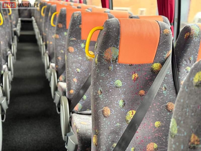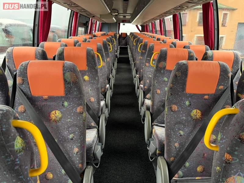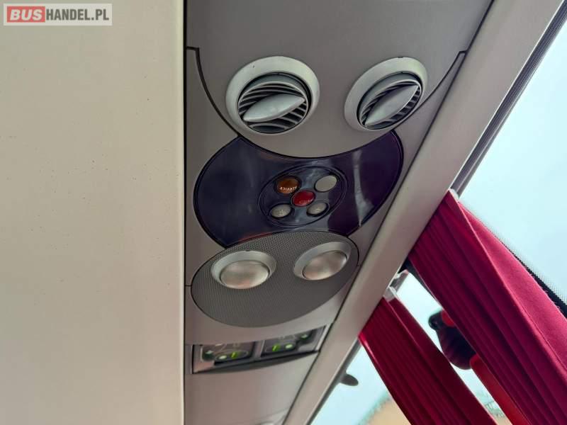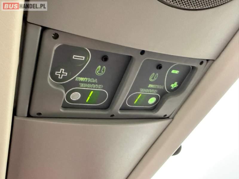 : WC, oświetlenie indywidualne, nawiewy dyszowe, ABS, ASR, tempomat, retarder, CD, podnóżki, mikrofon, klimatyzacja, radio, wyświetlacz matrix, rampa dla inwalidów, regulacja wysokości nadwozia, centralny zamek, podwójne szyby boczne, wspomaganie kierownicy, elektryczne lusterka, fotele odchylane i rozsuwane, ogrzewanie stacjonarne
