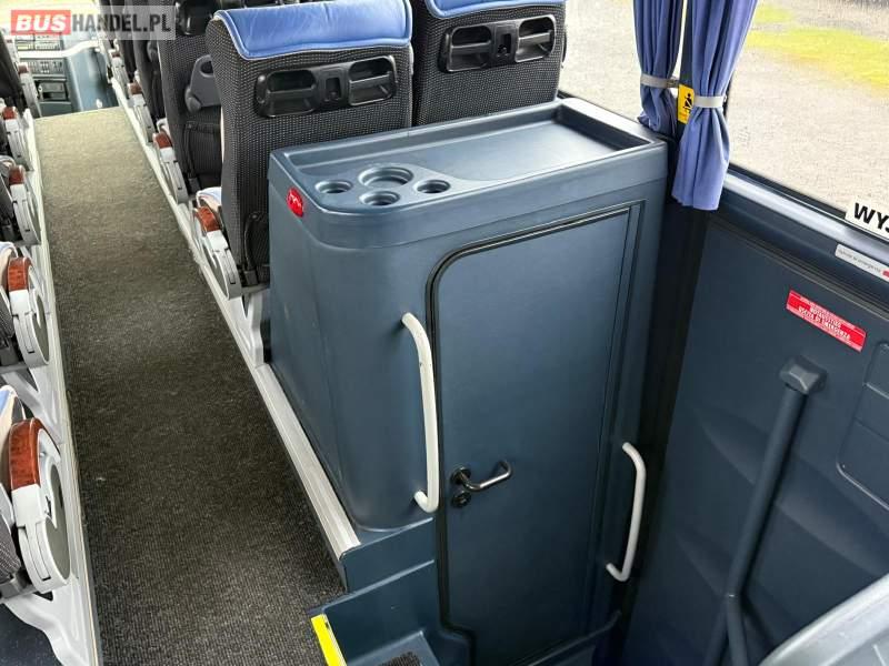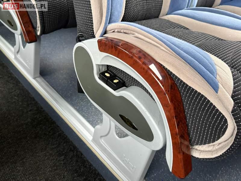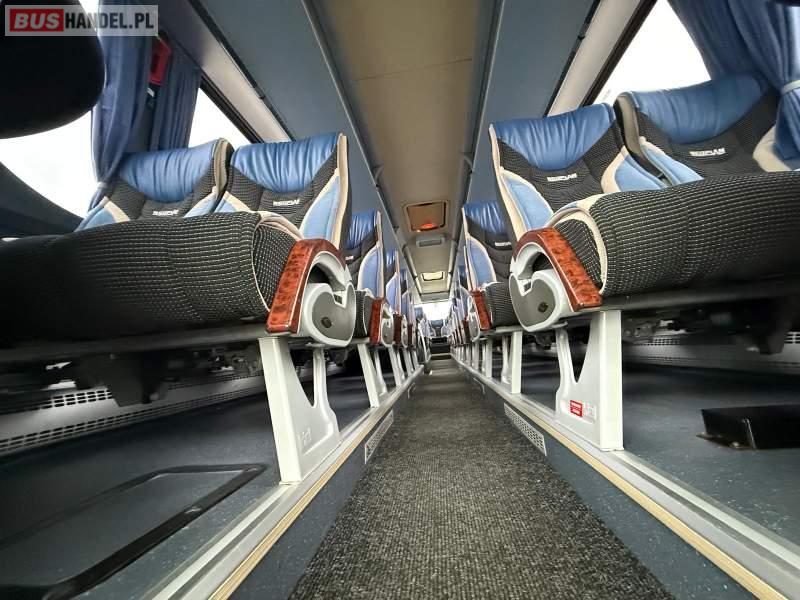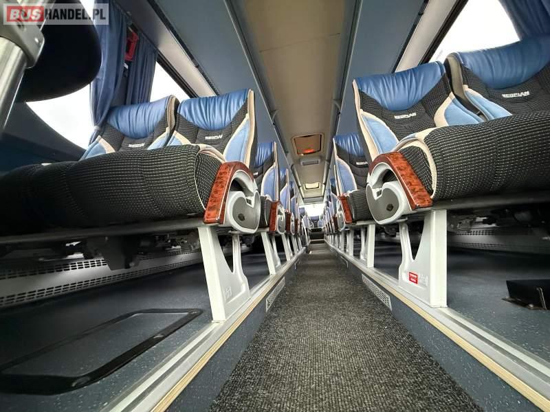 : klimatyzacja, video, WC, lodówka, kabina sypialna, oświetlenie indywidualne, nawiewy dyszowe, podnóżki, stoliczki, siateczki, ABS, ASR, tempomat, retarder, CD, mikrofon, radio, fotele odchylane i rozsuwane, regulacja wysokości nadwozia, centralny zamek, podwójne szyby boczne, wspomaganie kierownicy, elektryczne lusterka, ogrzewanie stacjonarne, DVD, ESP
