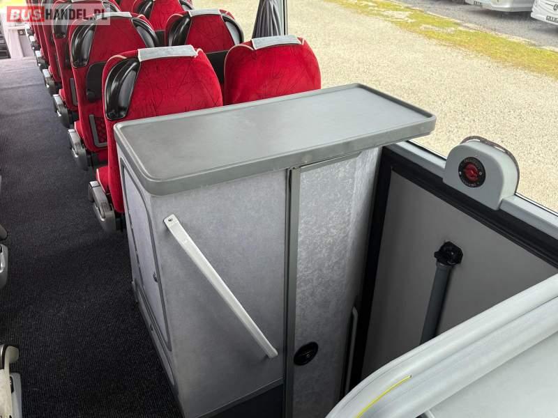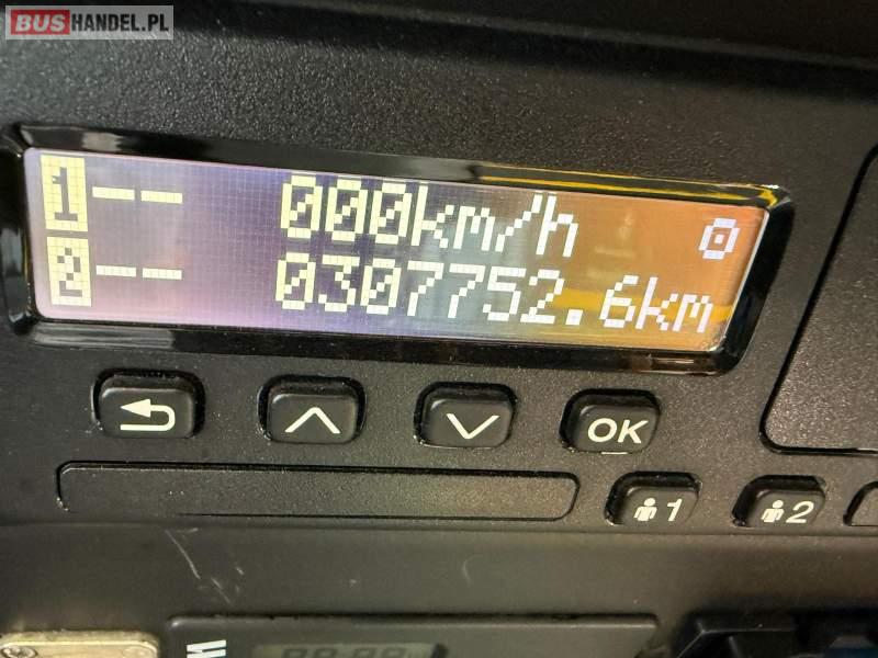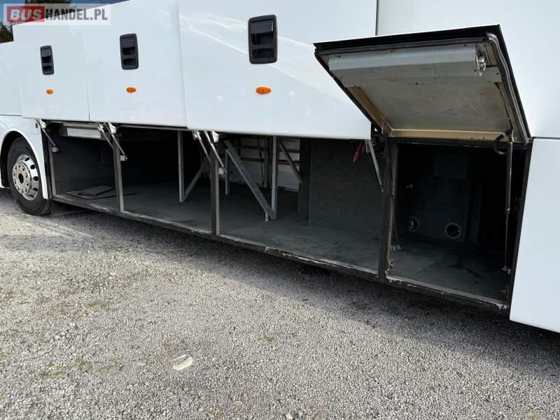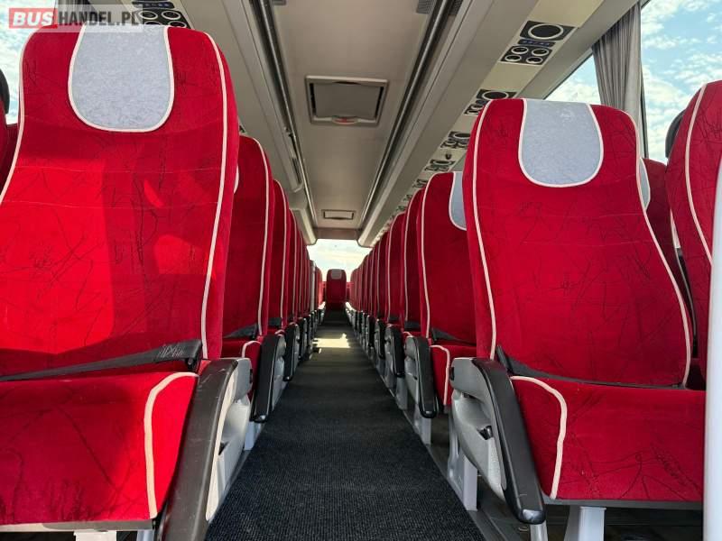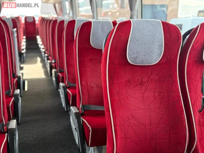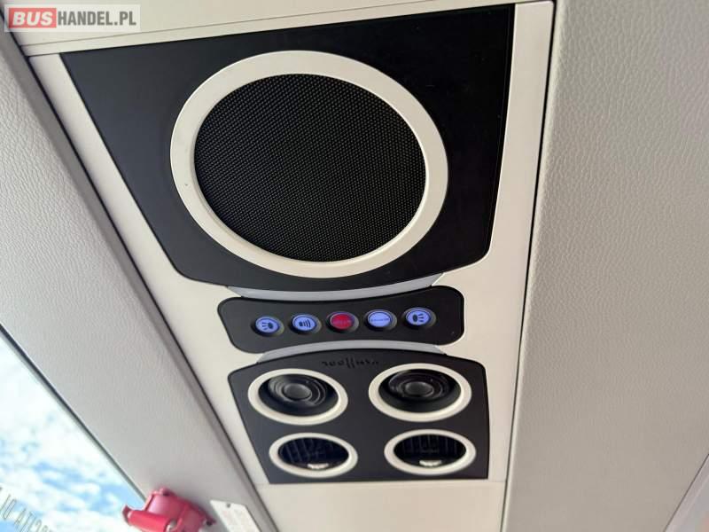 : video, WC, lodówka, kabina sypialna, oświetlenie indywidualne, nawiewy dyszowe, siateczki, ABS, ASR, tempomat, retarder, CD, podnóżki, stoliczki, mikrofon, klimatyzacja, radio, regulacja wysokości nadwozia, centralny zamek, podwójne szyby boczne, wspomaganie kierownicy, elektryczne lusterka, aluminiowe felgi, fotele odchylane i rozsuwane, DVD, ogrzewanie stacjonarne, ESP