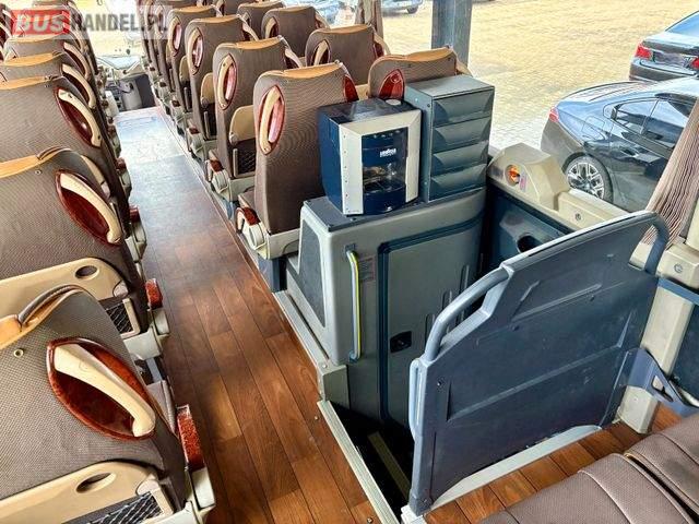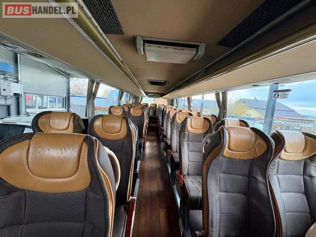: video, WC, lodówka, oświetlenie indywidualne, ABS, ASR, tempomat, retarder, CD, podnóżki, mikrofon, klimatyzacja, radio, regulacja wysokości nadwozia, centralny zamek, podwójne szyby boczne, wspomaganie kierownicy, elektryczne lusterka, fotele odchylane i rozsuwane, DVD, ogrzewanie stacjonarne, ESP