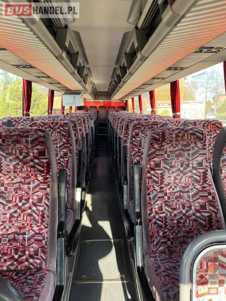 : klimatyzacja, video, WC, lodówka, kabina sypialna, oświetlenie indywidualne, nawiewy dyszowe, fotele odchylane, fotele nieodchylane, podnóżki, stoliczki, siateczki, ABS, ASR, tempomat, retarder, mikrofon, radio, fotele odchylane i rozsuwane, rampa dla inwalidów, centralny zamek, podwójne szyby boczne, wspomaganie kierownicy, elektryczne lusterka, ogrzewanie stacjonarne