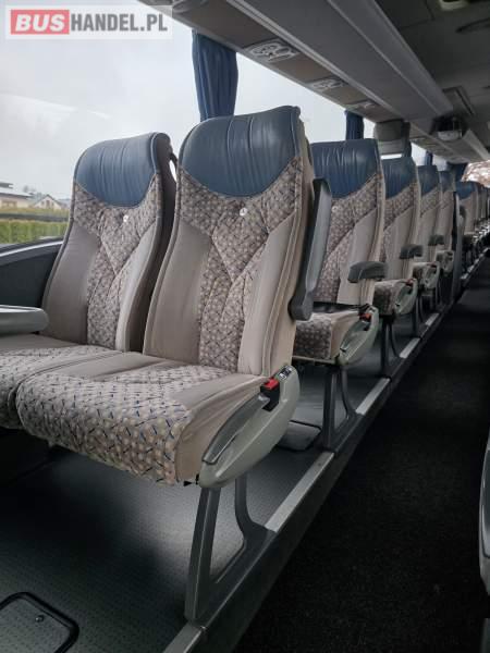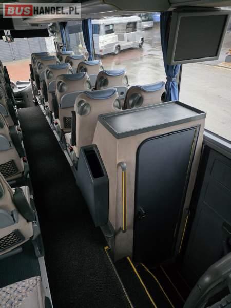 : WC, lodówka, oświetlenie indywidualne, nawiewy dyszowe, siateczki, ABS, ASR, tempomat, retarder, podnóżki, stoliczki, mikrofon, klimatyzacja, radio, sejf, regulacja wysokości nadwozia, centralny zamek, podwójne szyby boczne, wspomaganie kierownicy, elektryczne lusterka, fotele odchylane i rozsuwane, DVD, ogrzewanie stacjonarne, ESP