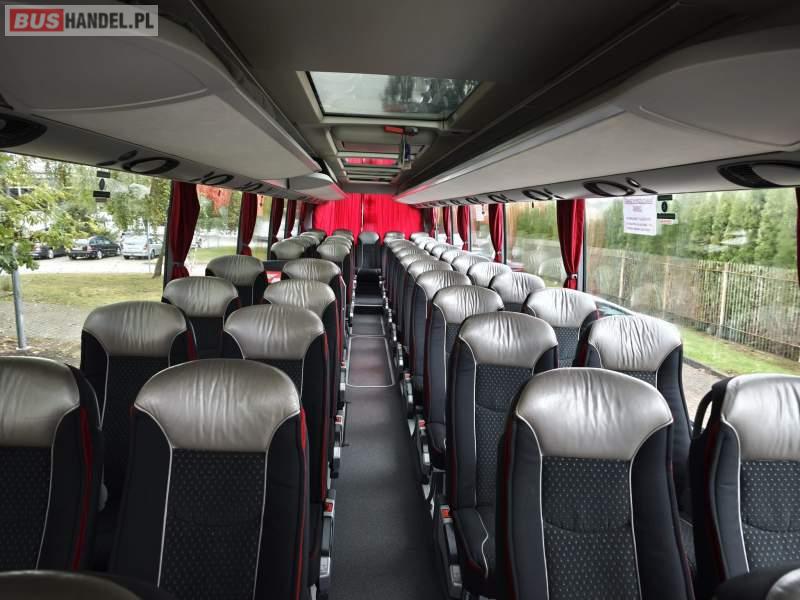 : WC, lodówka, caffebar, kabina sypialna, fotele odchylane, oświetlenie indywidualne, nawiewy dyszowe, ABS, ASR, retarder, nawigacja, CD, podnóżki, mikrofon, klimatyzacja, radio, regulacja wysokości nadwozia, centralny zamek, podwójne szyby boczne, elektryczne lusterka, DVD, ogrzewanie stacjonarne