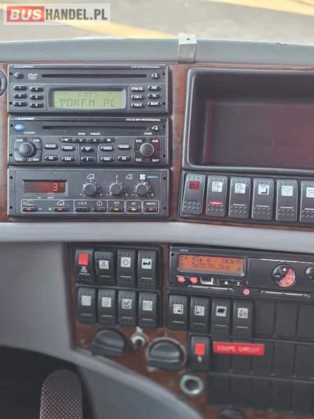 : klimatyzacja, WC, lodówka, oświetlenie indywidualne, nawiewy dyszowe, fotele odchylane, podnóżki, stoliczki, siateczki, ABS, ASR, tempomat, retarder, mikrofon, radio, sejf, regulacja wysokości nadwozia, centralny zamek, podwójne szyby boczne, wspomaganie kierownicy, elektryczne lusterka, ogrzewanie stacjonarne
