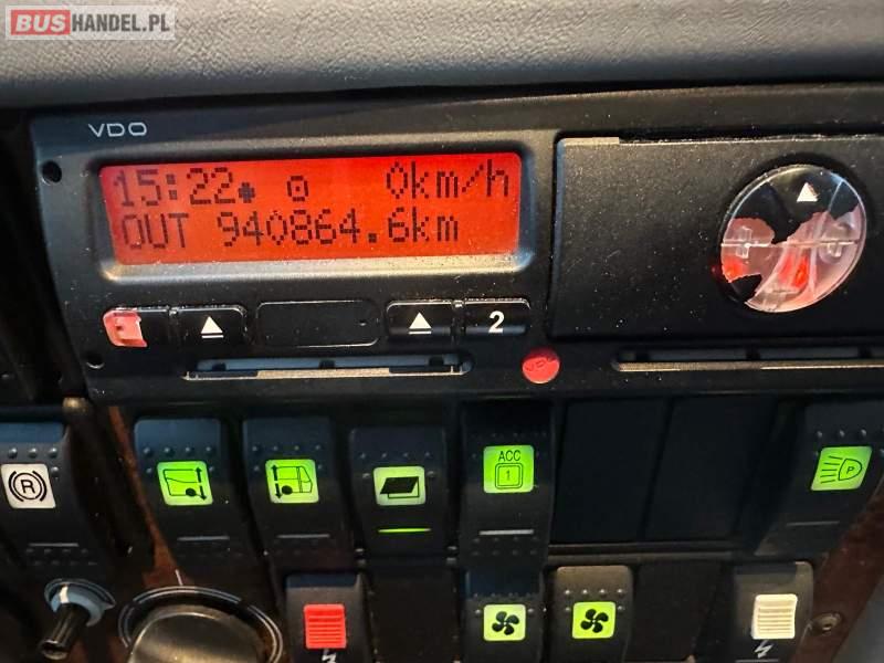 : klimatyzacja, WC, lodówka, caffebar, kabina sypialna, oświetlenie indywidualne, nawiewy dyszowe, fotele odchylane, podnóżki, stoliczki, siateczki, ABS, ASR, tempomat, retarder, telefon, CD, mikrofon, radio, fotele odchylane i rozsuwane, wyświetlacz matrix, sejf, regulacja wysokości nadwozia, centralny zamek, podwójne szyby boczne, wspomaganie kierownicy, elektryczne lusterka, ogrzewanie stacjonarne, DVD, hak holowniczy, ESP