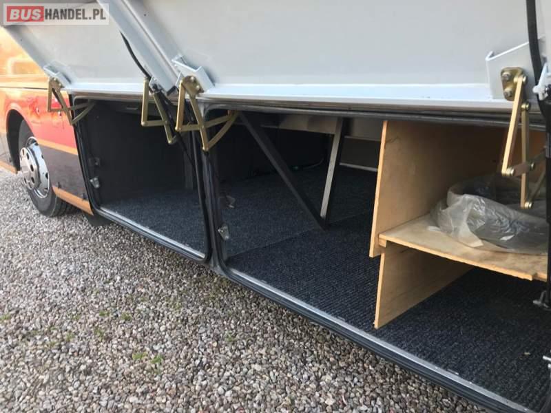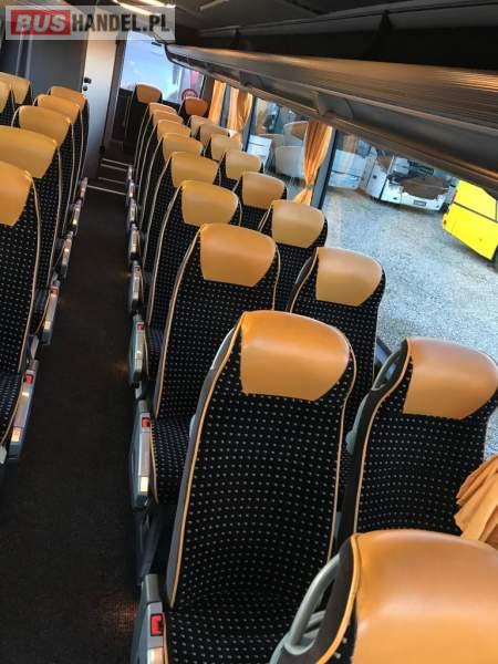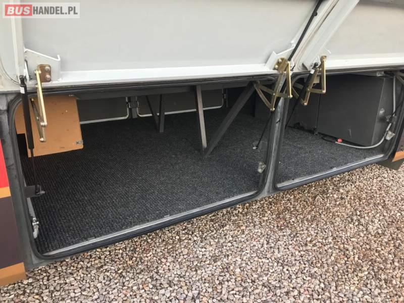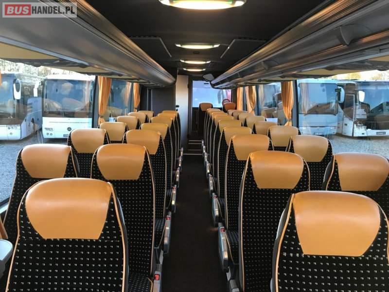 : video, WC, lodówka, caffebar, fotele odchylane, oświetlenie indywidualne, ABS, ASR, tempomat, retarder, CD, podnóżki, mikrofon, klimatyzacja, radio, centralny zamek, podwójne szyby boczne, wspomaganie kierownicy, elektryczne lusterka, DVD, ogrzewanie stacjonarne, hak holowniczy, ESP