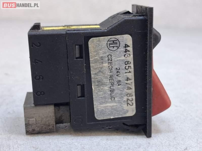 Włącznik, przycisk, klawisz świateł awaryjnych KAROSA HLF nr 443 851 474 822, z napisem HAZARD Sprzedający: