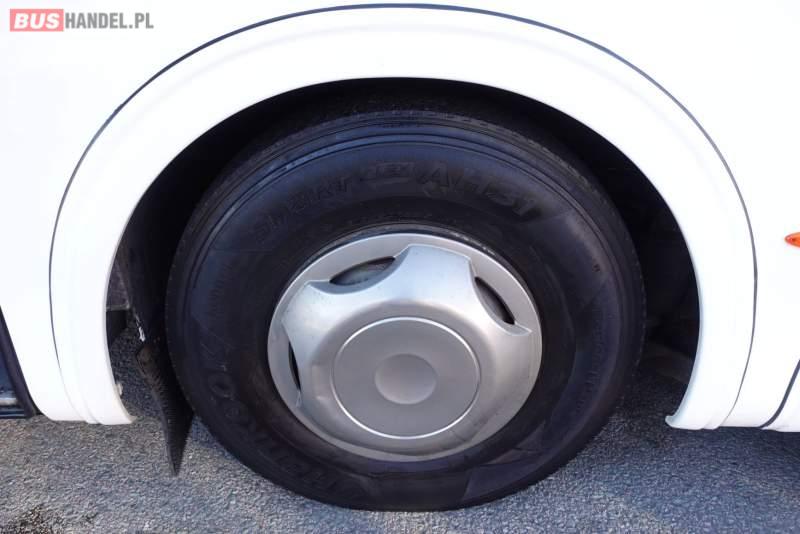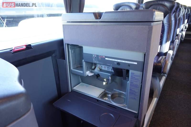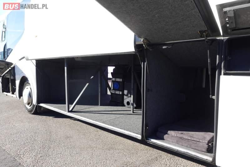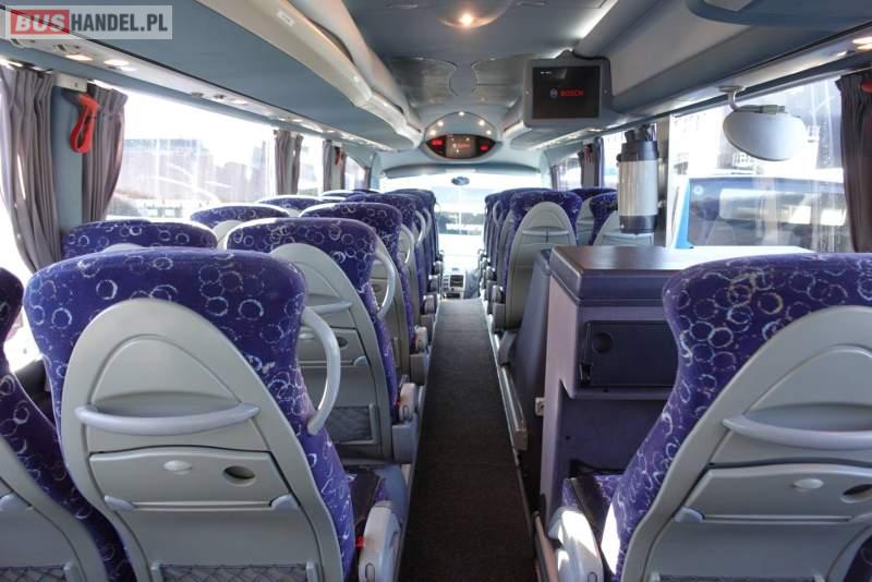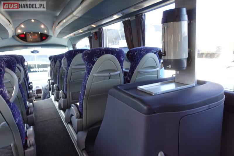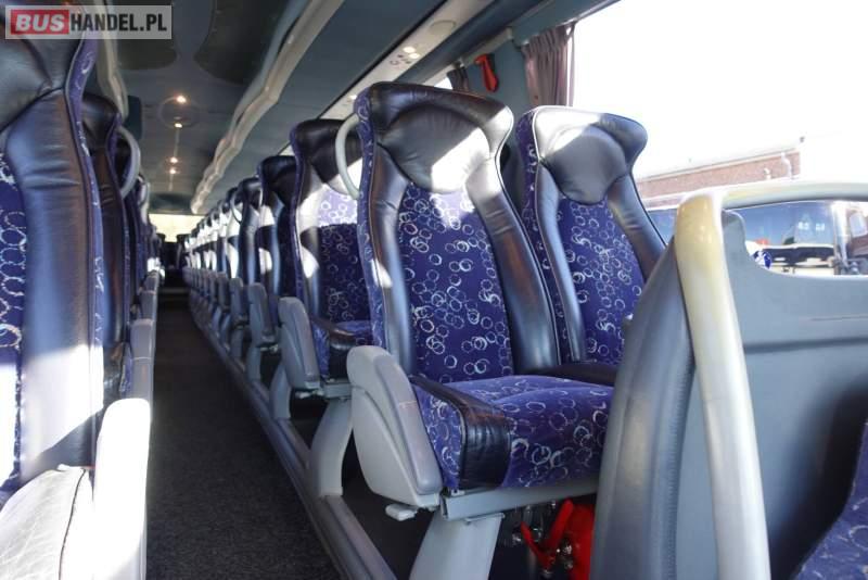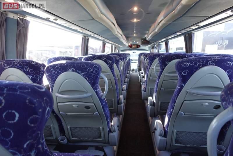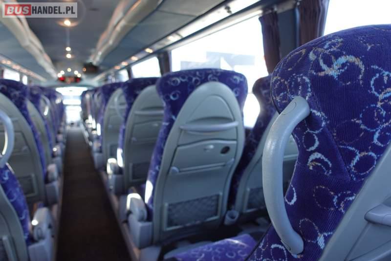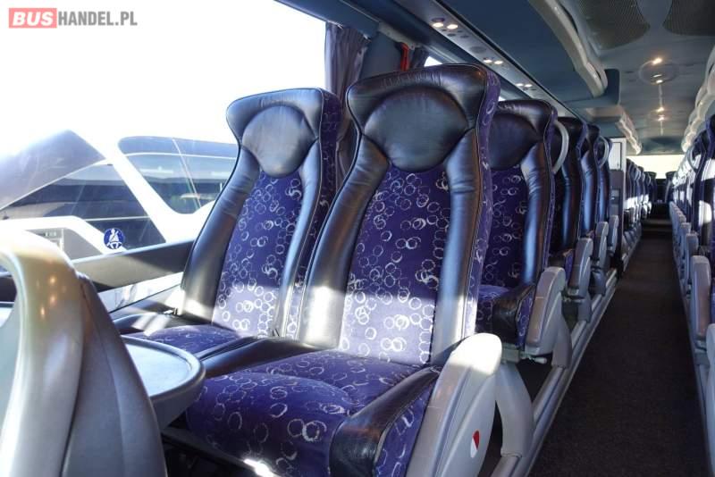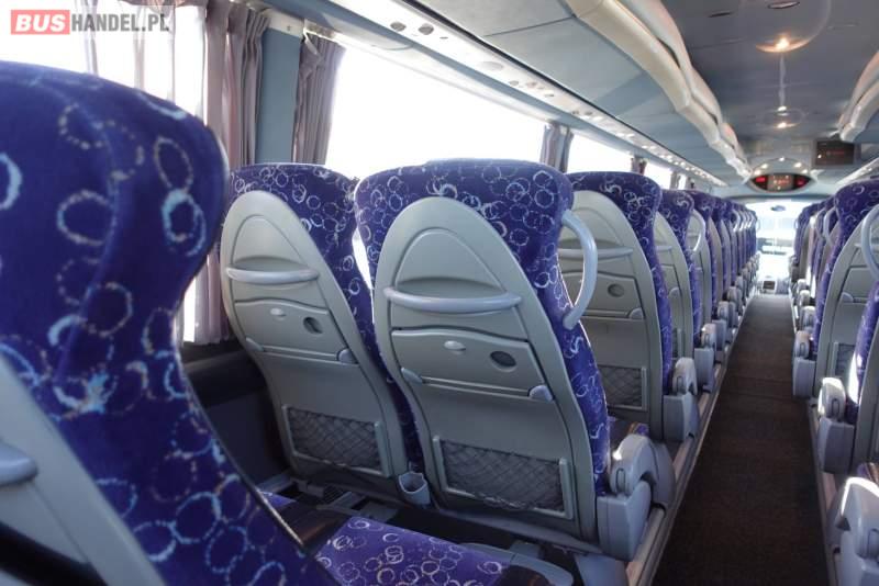 : video, WC, lodówka, caffebar, kabina sypialna, fotele odchylane, oświetlenie indywidualne, nawiewy dyszowe, siateczki, ABS, ASR, tempomat, retarder, CD, podnóżki, stoliczki, mikrofon, klimatyzacja, radio, regulacja wysokości nadwozia, centralny zamek, podwójne szyby boczne, wspomaganie kierownicy, elektryczne lusterka, fotele odchylane i rozsuwane, DVD, ogrzewanie stacjonarne, hak holowniczy, ESP