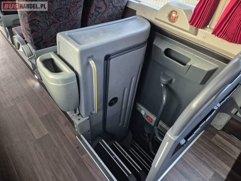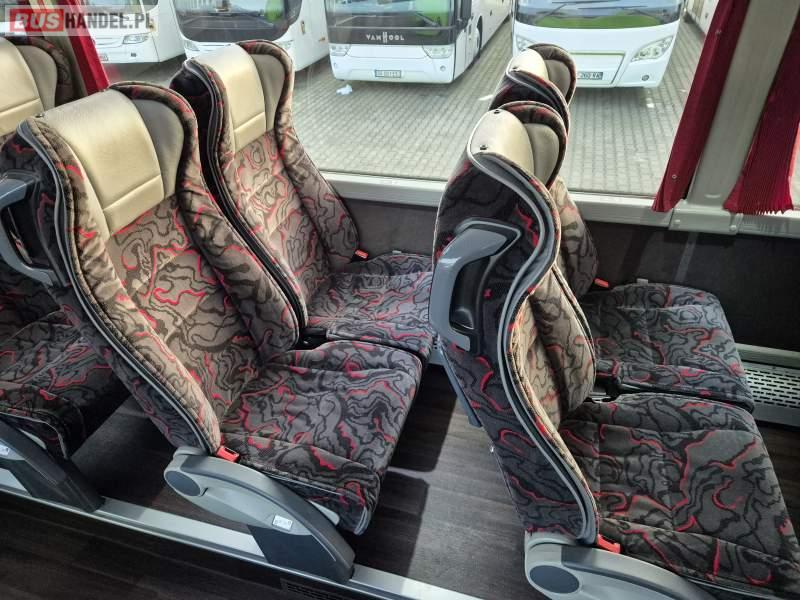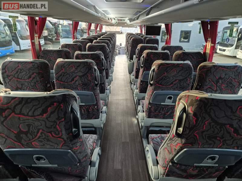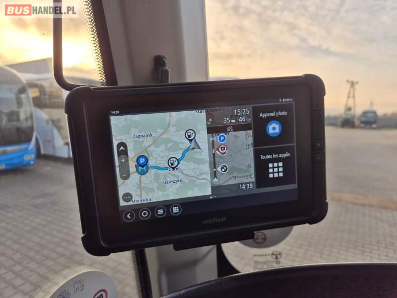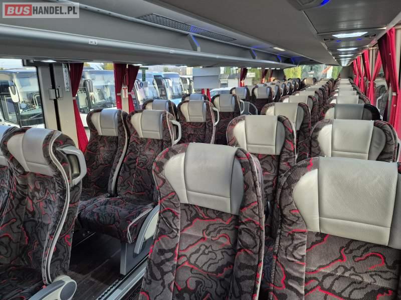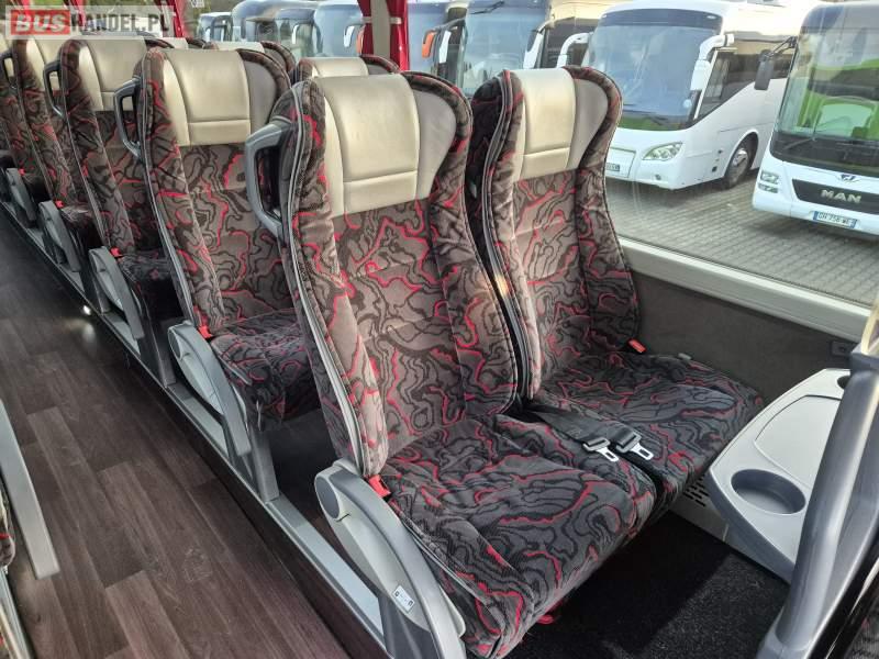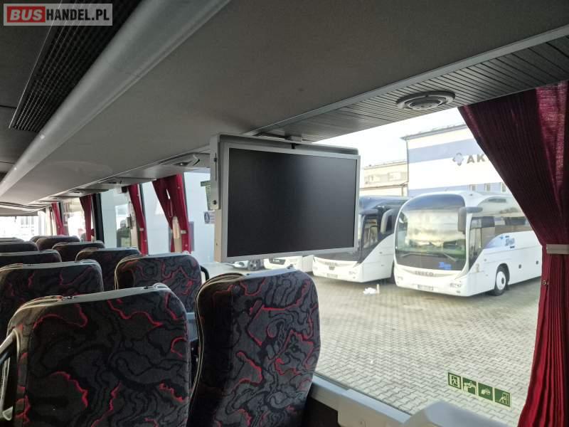 : klimatyzacja, video, WC, lodówka, kabina sypialna, oświetlenie indywidualne, fotele odchylane, podnóżki, stoliczki, siateczki, ABS, tempomat, retarder, telefon, nawigacja, CD, mikrofon, radio, rampa dla inwalidów, regulacja wysokości nadwozia, centralny zamek, podwójne szyby boczne, wspomaganie kierownicy, elektryczne lusterka, ogrzewanie stacjonarne, DVD