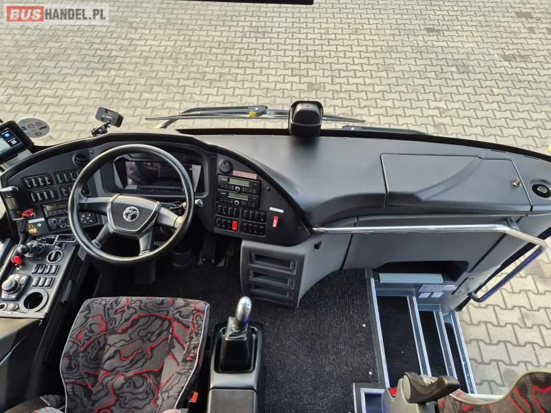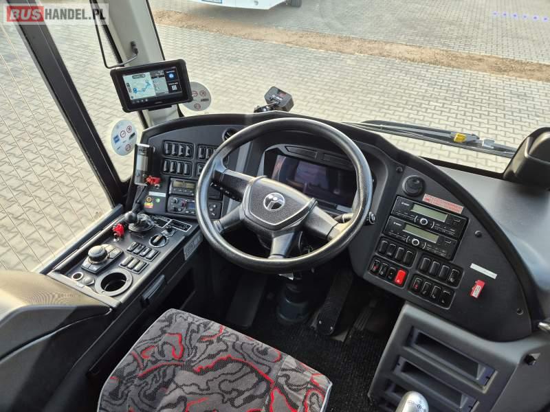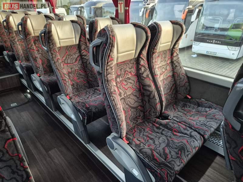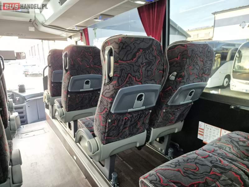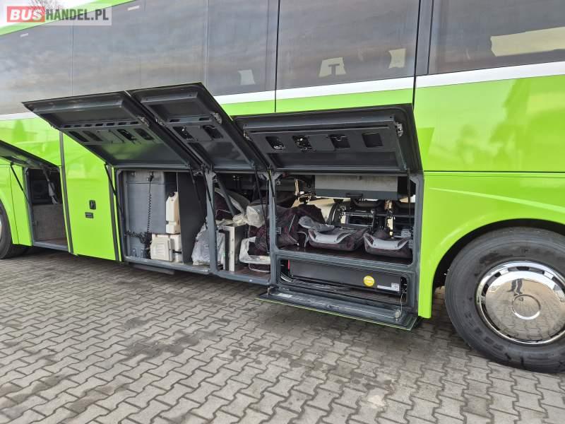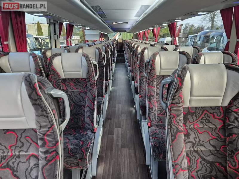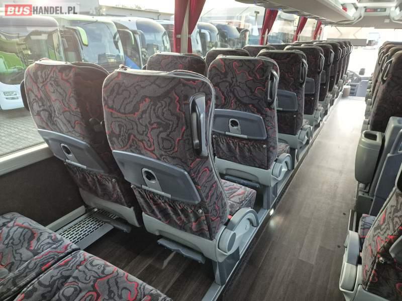 : klimatyzacja, video, WC, lodówka, kabina sypialna, oświetlenie indywidualne, fotele odchylane, podnóżki, stoliczki, siateczki, ABS, tempomat, retarder, telefon, nawigacja, CD, mikrofon, radio, rampa dla inwalidów, regulacja wysokości nadwozia, centralny zamek, podwójne szyby boczne, wspomaganie kierownicy, elektryczne lusterka, ogrzewanie stacjonarne, DVD