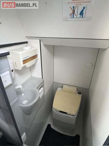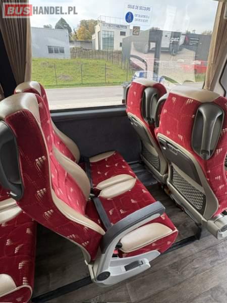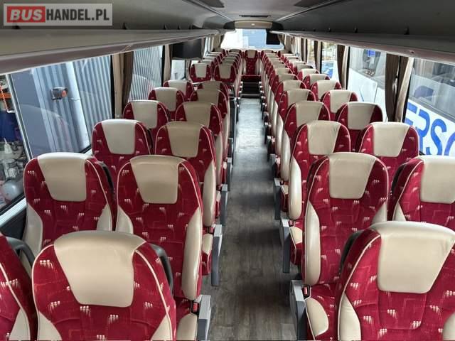 : WC, lodówka, fotele odchylane, oświetlenie indywidualne, nawiewy dyszowe, siateczki, ABS, ASR, tempomat, retarder, podnóżki, stoliczki, mikrofon, klimatyzacja, radio, sejf, regulacja wysokości nadwozia, centralny zamek, podwójne szyby boczne, wspomaganie kierownicy, elektryczne lusterka, DVD, ogrzewanie stacjonarne, ESP
