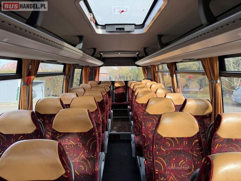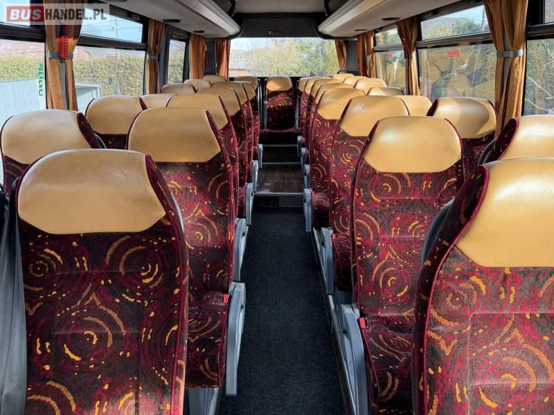 : fotele odchylane, oświetlenie indywidualne, nawiewy dyszowe, siateczki, ABS, ASR, tempomat, retarder, podnóżki, stoliczki, mikrofon, klimatyzacja, radio, sejf, centralny zamek, podwójne szyby boczne, wspomaganie kierownicy, elektryczne lusterka, fotele odchylane i rozsuwane, ogrzewanie stacjonarne