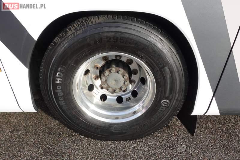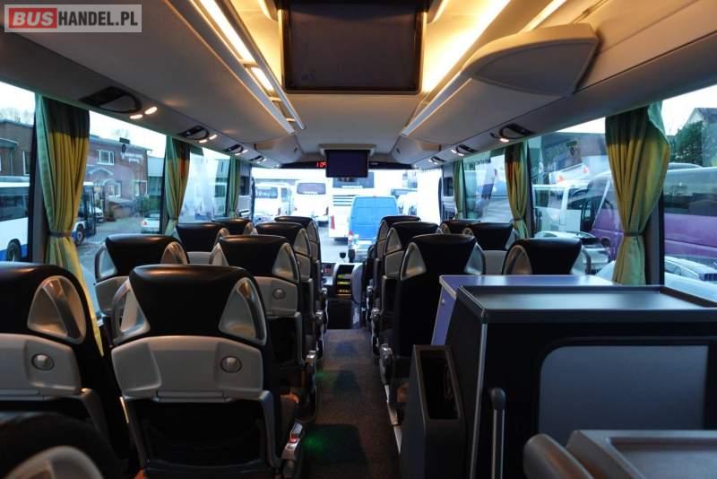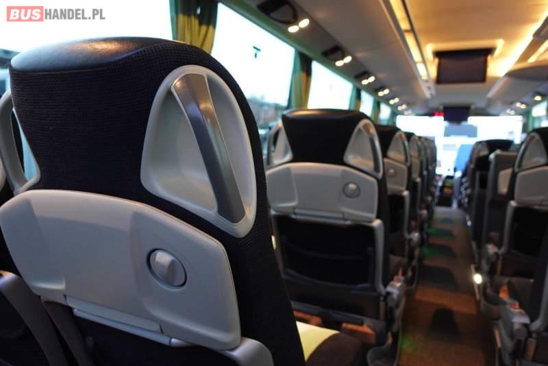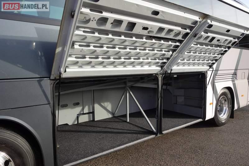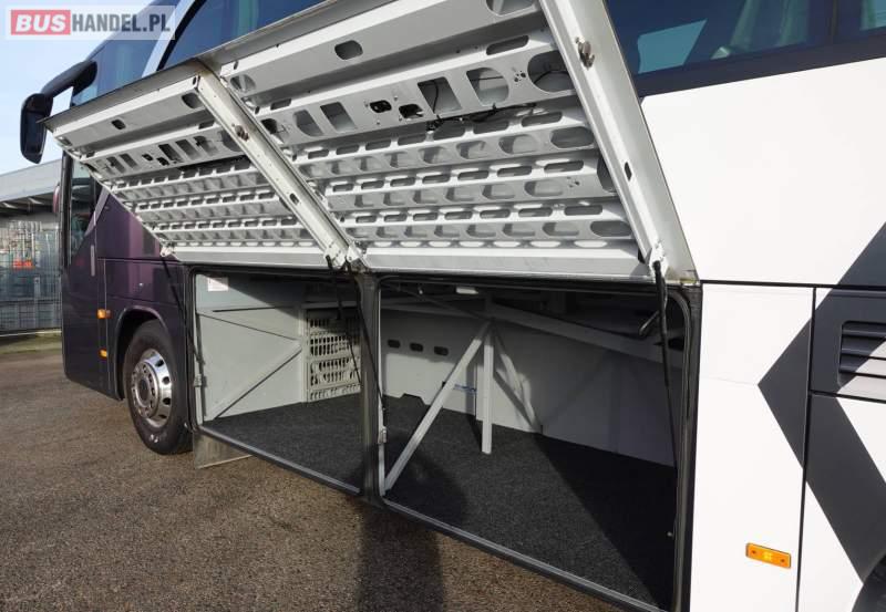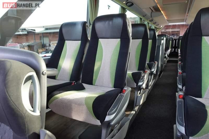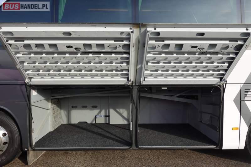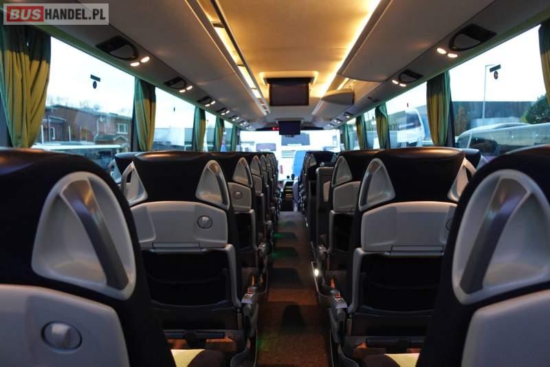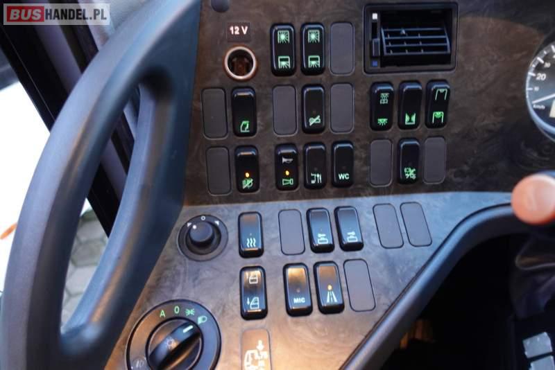 : video, WC, lodówka, caffebar, fotele odchylane, oświetlenie indywidualne, nawiewy dyszowe, siateczki, ABS, ASR, tempomat, retarder, CD, podnóżki, stoliczki, mikrofon, klimatyzacja, radio, regulacja wysokości nadwozia, centralny zamek, podwójne szyby boczne, wspomaganie kierownicy, elektryczne lusterka, fotele odchylane i rozsuwane, DVD, ogrzewanie stacjonarne, ESP