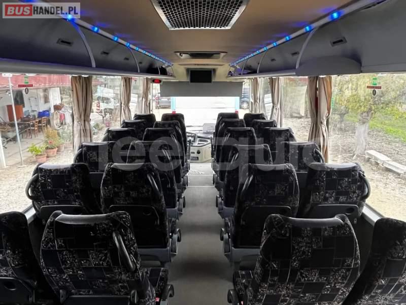 : lodówka, fotele odchylane, ABS, ASR, retarder, stoliczki, mikrofon, radio