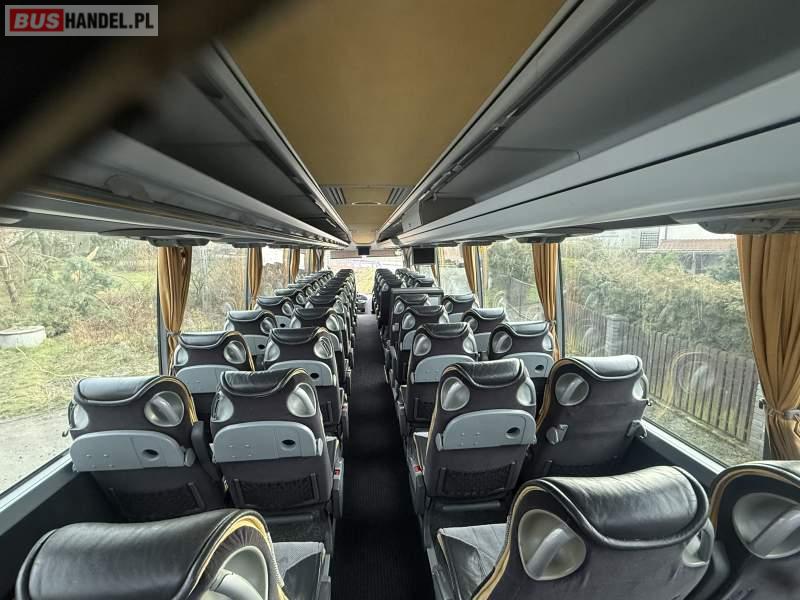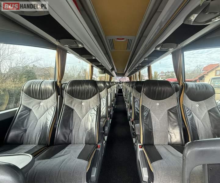 : klimatyzacja, video, WC, lodówka, caffebar, kabina sypialna, oświetlenie indywidualne, nawiewy dyszowe, podnóżki, stoliczki, siateczki, ABS, ASR, tempomat, retarder, telefon, nawigacja, CD, mikrofon, radio, fotele odchylane i rozsuwane, sejf, regulacja wysokości nadwozia, centralny zamek, podwójne szyby boczne, wspomaganie kierownicy, elektryczne lusterka, ogrzewanie stacjonarne, DVD, ESP