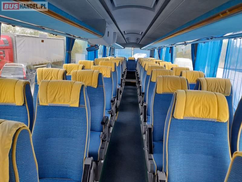 : klimatyzacja, WC, lodówka, caffebar, kabina sypialna, oświetlenie indywidualne, nawiewy dyszowe, fotele odchylane, podnóżki, stoliczki, siateczki, ABS, ASR, tempomat, retarder, CD, mikrofon, radio, fotele odchylane i rozsuwane, sejf, regulacja wysokości nadwozia, centralny zamek, podwójne szyby boczne, wspomaganie kierownicy, aluminiowe felgi, elektryczne lusterka, ogrzewanie stacjonarne