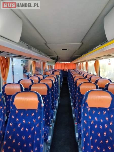 : klimatyzacja, WC, lodówka, oświetlenie indywidualne, nawiewy dyszowe, podnóżki, stoliczki, siateczki, ABS, ASR, tempomat, retarder, CD, mikrofon, radio, fotele odchylane i rozsuwane, regulacja wysokości nadwozia, podwójne szyby boczne, wspomaganie kierownicy, ogrzewanie stacjonarne, DVD, hak holowniczy, ESP