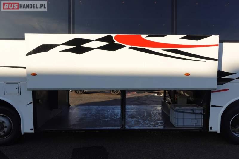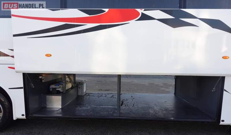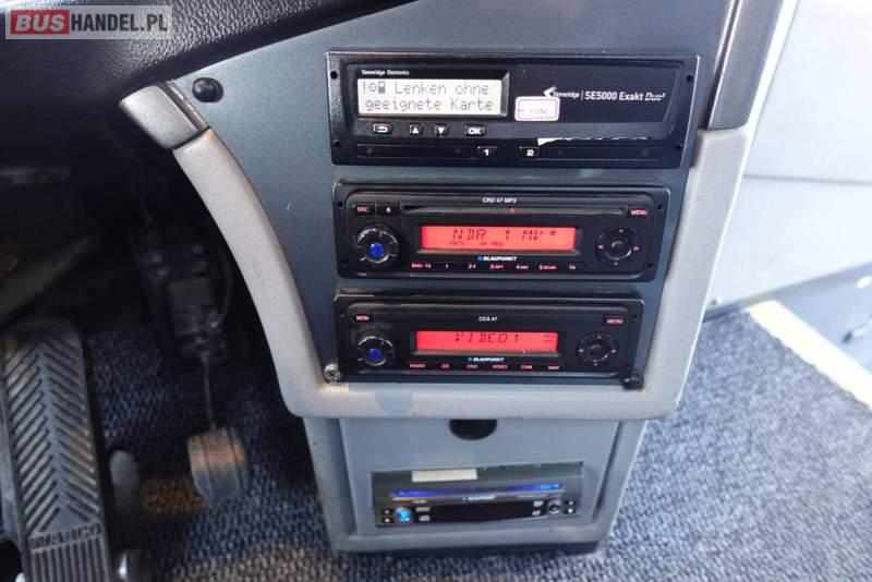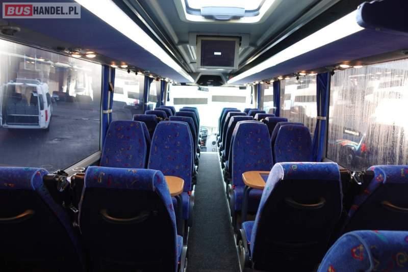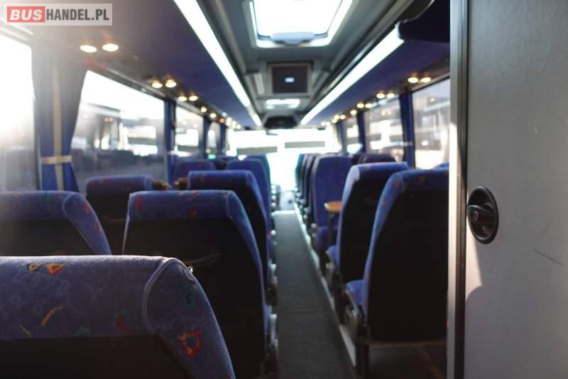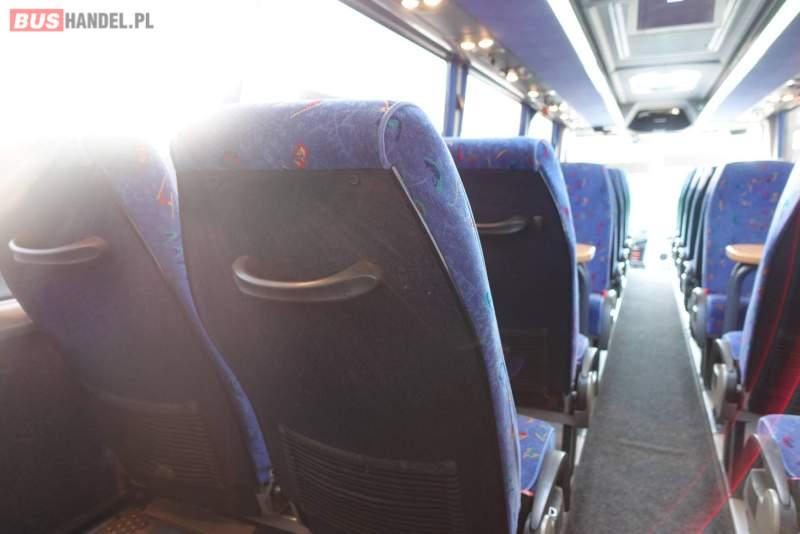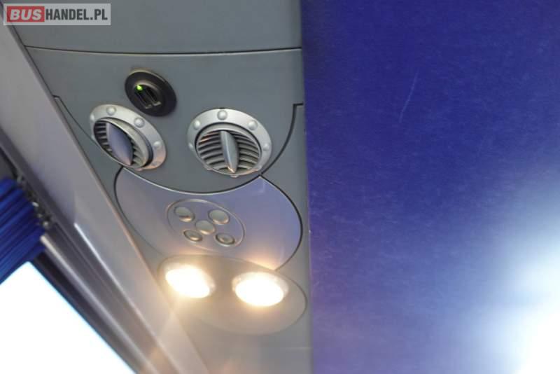 : video, WC, fotele odchylane, oświetlenie indywidualne, nawiewy dyszowe, siateczki, ABS, ASR, retarder, CD, podnóżki, stoliczki, klimatyzacja, regulacja wysokości nadwozia, centralny zamek, podwójne szyby boczne, wspomaganie kierownicy, elektryczne lusterka, fotele odchylane i rozsuwane, DVD, ogrzewanie stacjonarne, ESP