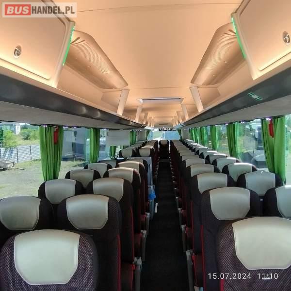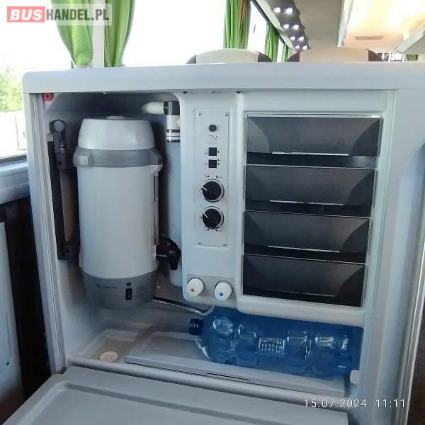 Wyposażenie : WC, lodówka, caffebar, kabina sypialna, oświetlenie indywidualne, nawiewy dyszowe, siateczki, ABS, ASR, tempomat, retarder, CD, podnóżki, stoliczki, mikrofon, klimatyzacja, radio, regulacja wysokości nadwozia, centralny zamek, podwójne szyby boczne, wspomaganie kierownicy, elektryczne lusterka, aluminiowe felgi, fotele odchylane i rozsuwane, DVD, ogrzewanie stacjonarne, ESP