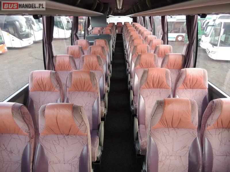 : video, WC, lodówka, caffebar, kabina sypialna, oświetlenie indywidualne, nawiewy dyszowe, siateczki, ABS, ASR, tempomat, retarder, CD, stoliczki, klimatyzacja, radio, regulacja wysokości nadwozia, centralny zamek, podwójne szyby boczne, wspomaganie kierownicy, fotele odchylane i rozsuwane, DVD, ogrzewanie stacjonarne