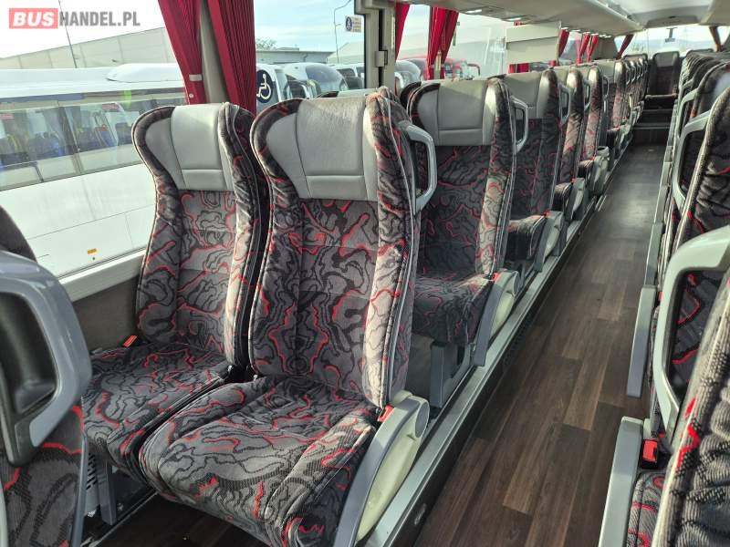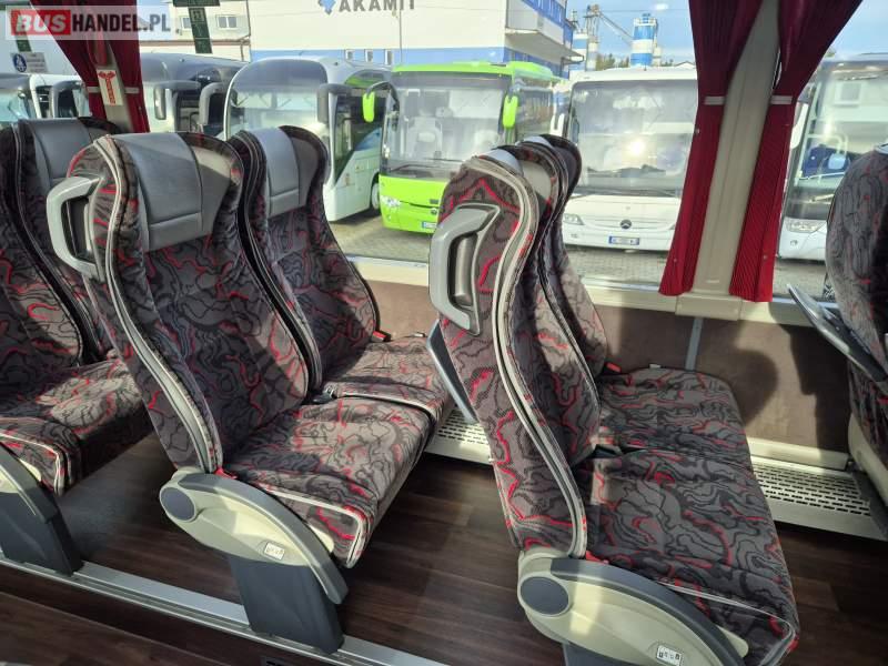 : video, WC, lodówka, kabina sypialna, fotele odchylane, oświetlenie indywidualne, siateczki, ABS, tempomat, retarder, telefon, nawigacja, CD, podnóżki, stoliczki, mikrofon, klimatyzacja, radio, rampa dla inwalidów, regulacja wysokości nadwozia, centralny zamek, podwójne szyby boczne, wspomaganie kierownicy, elektryczne lusterka, DVD, ogrzewanie stacjonarne